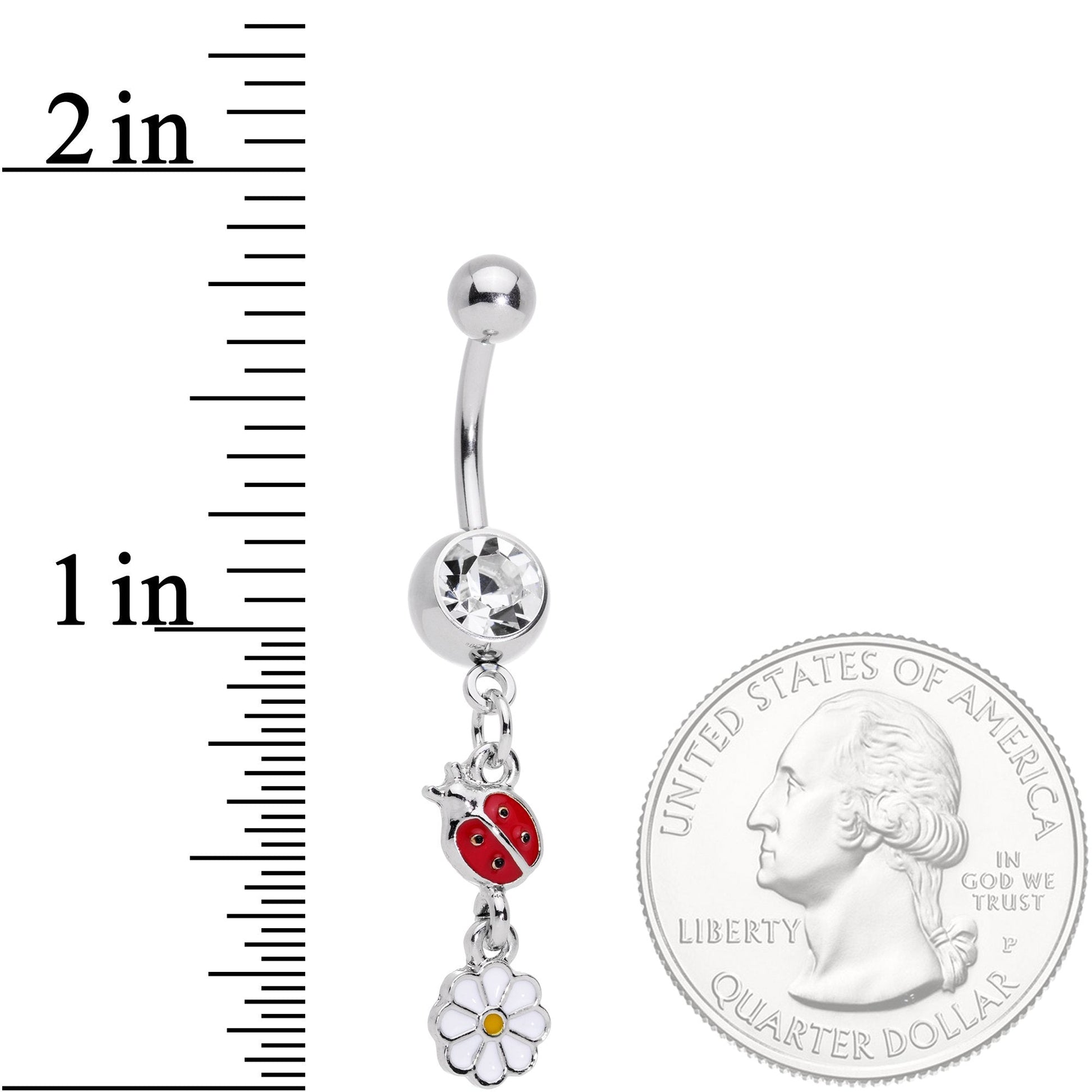 Clear Gem Spring Flower Lady Bug Dangle Belly Ring