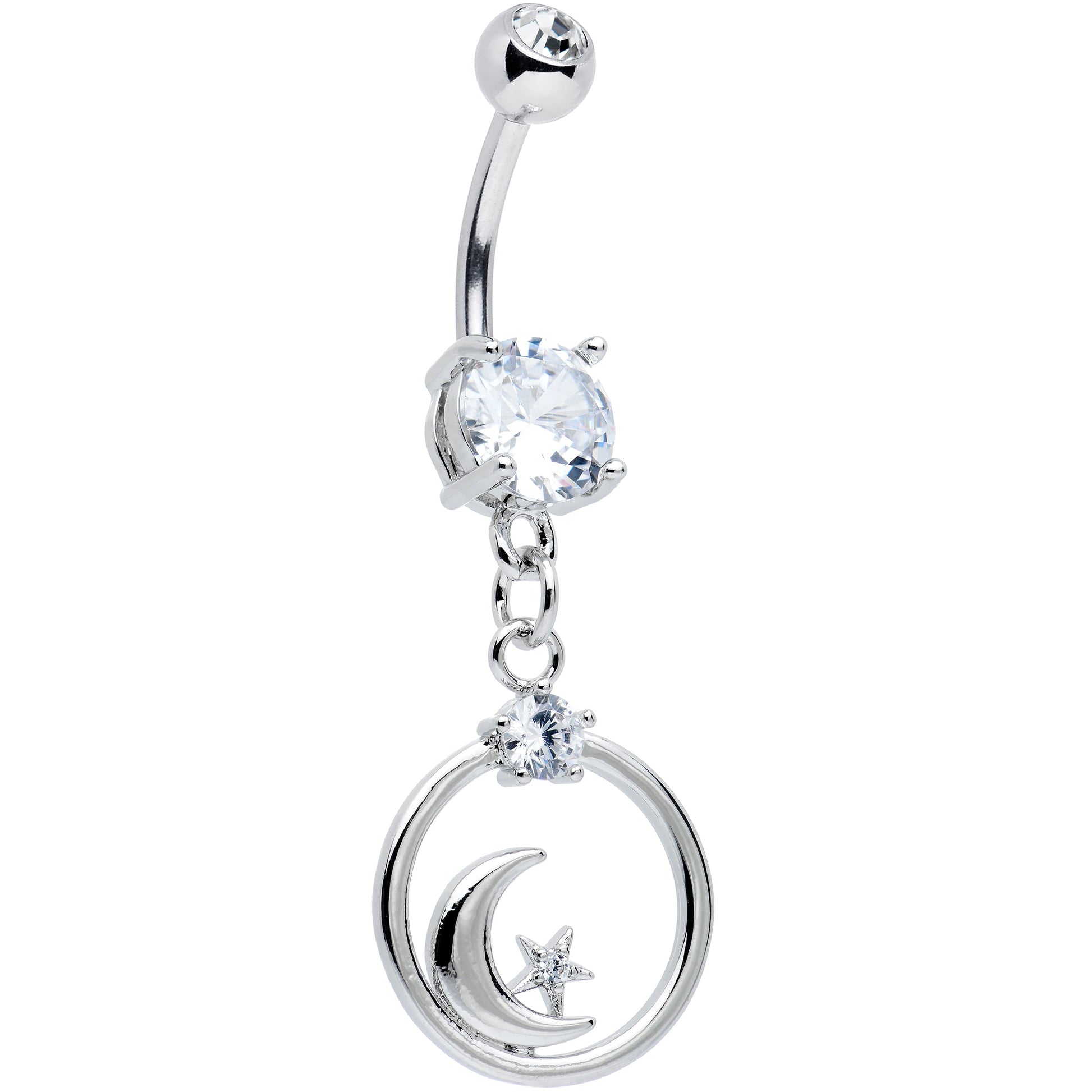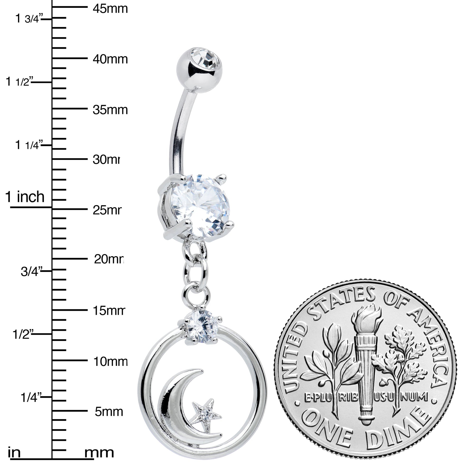 Clear Gem Star Crescent Moon Glamour Circle Dangle Belly Ring