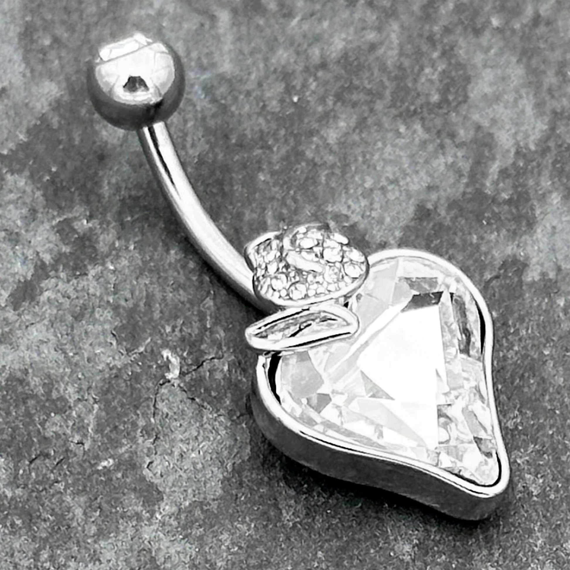 How delicious this 14 gauge navel ring looks. It is made with a 3/8 inch 316L surgical grade stainless steel curved barbell. The top ball end is 5mm and set with a clear gem. The bottom end features a clear gem strawberry with detailed embellishment which is set with clear gems. You will be feeling the summer strawberry love with this fabulous fruit belly piercing jewelry.Specifications