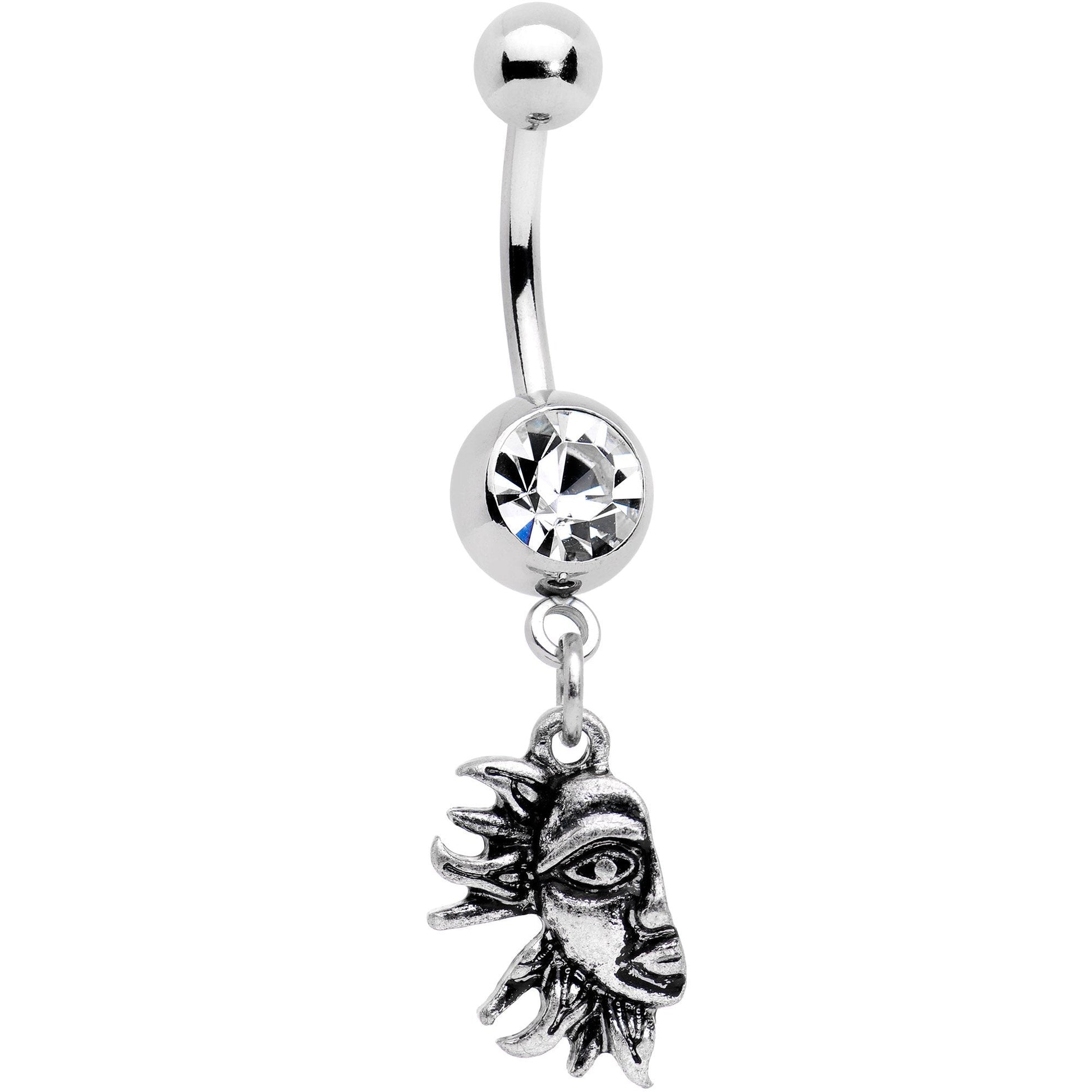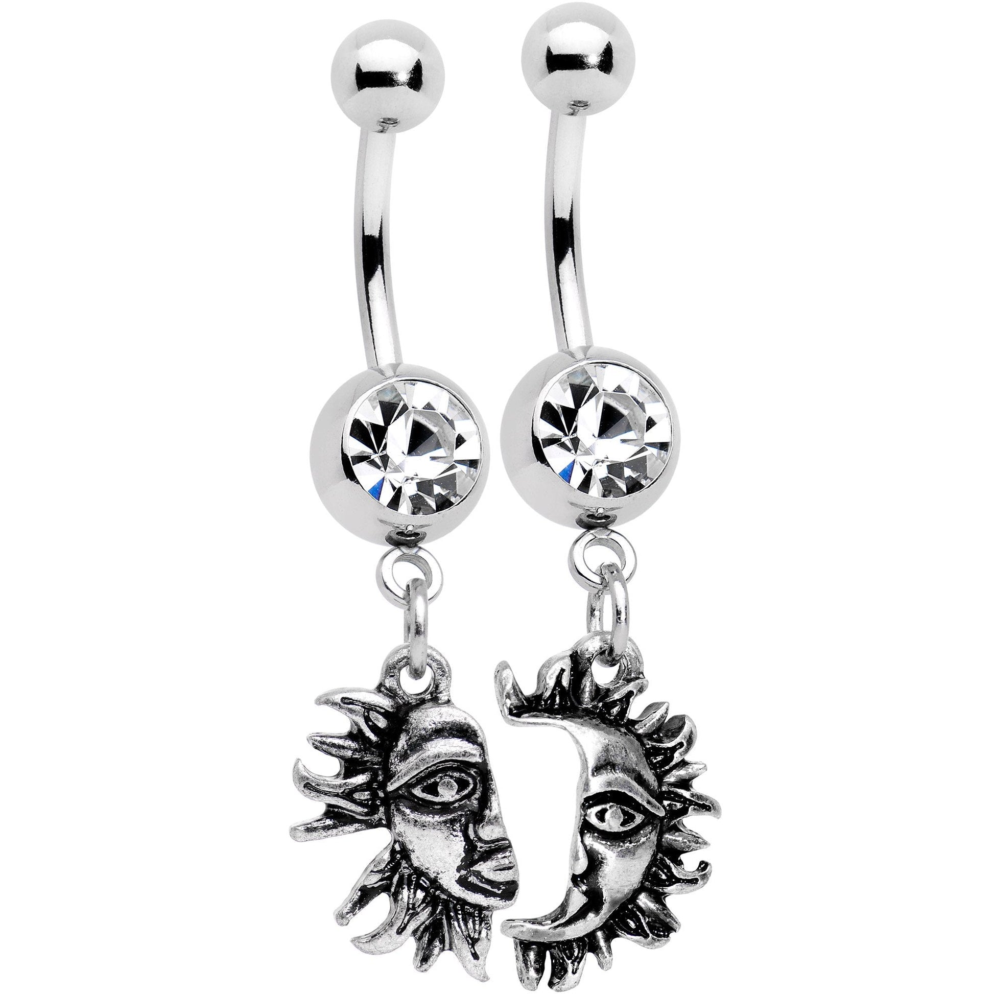 Clear Gem Sun Smile Puzzle Best Friend Dangle Belly Ring Set of 2