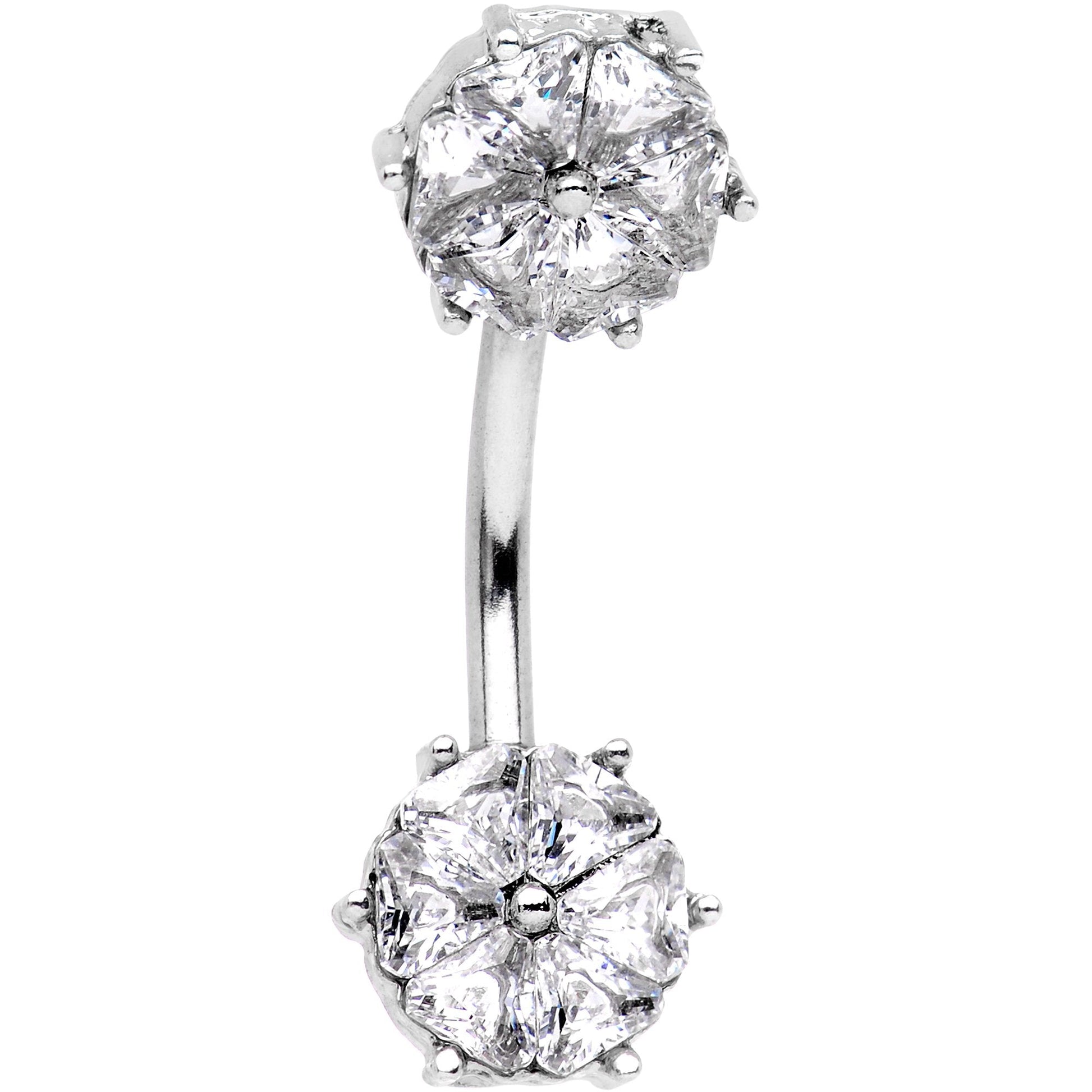 Clear Gem Twin Flowers Double Mount Belly Ring