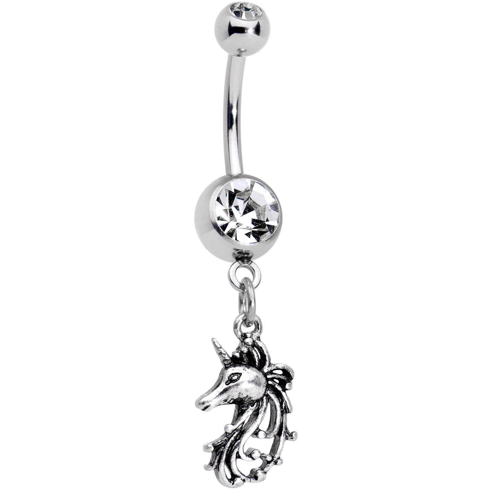 Clear Gem Unicorn Mane Dangle Belly Ring