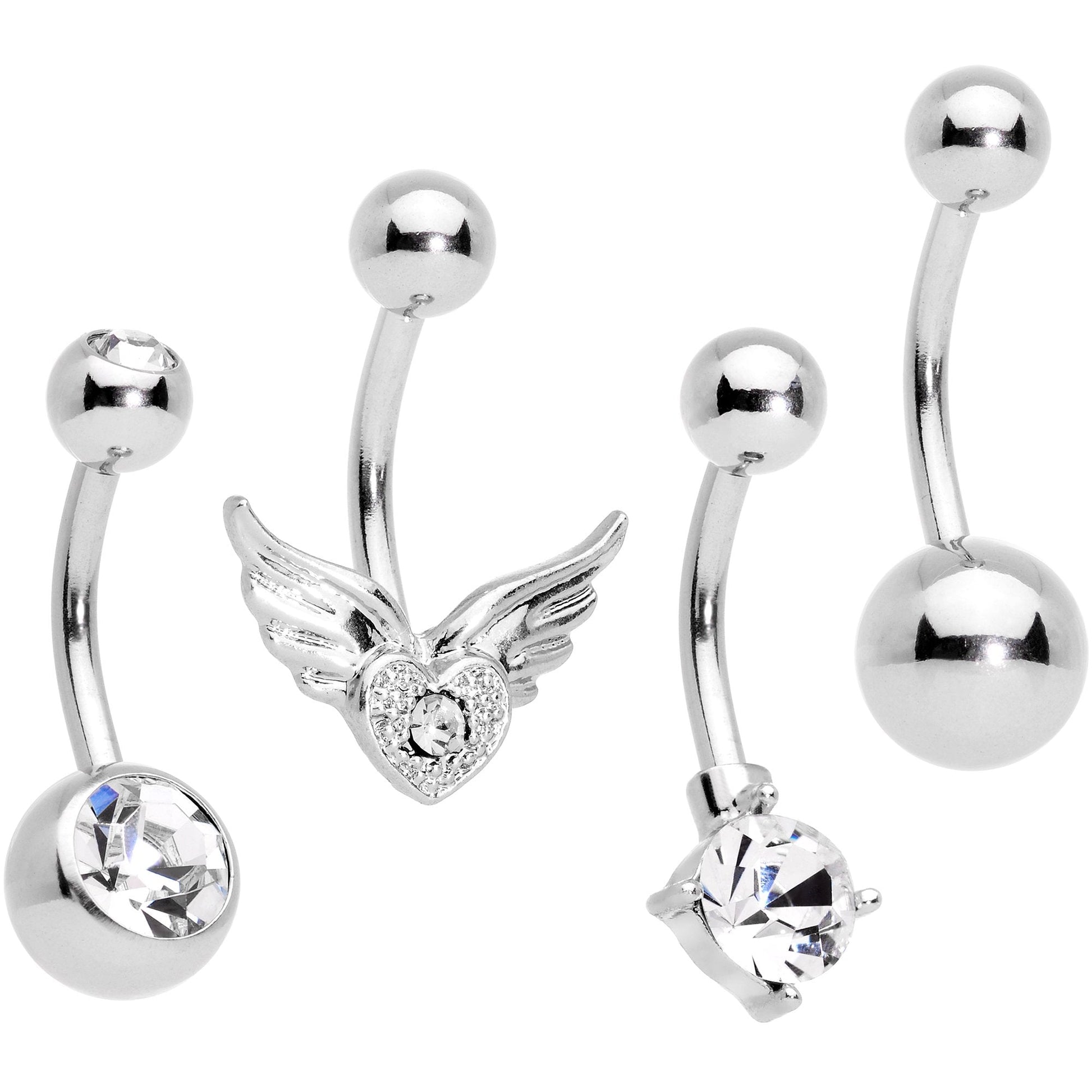 Clear Gem Valentines Day Winged Heart Belly Ring Set of 4