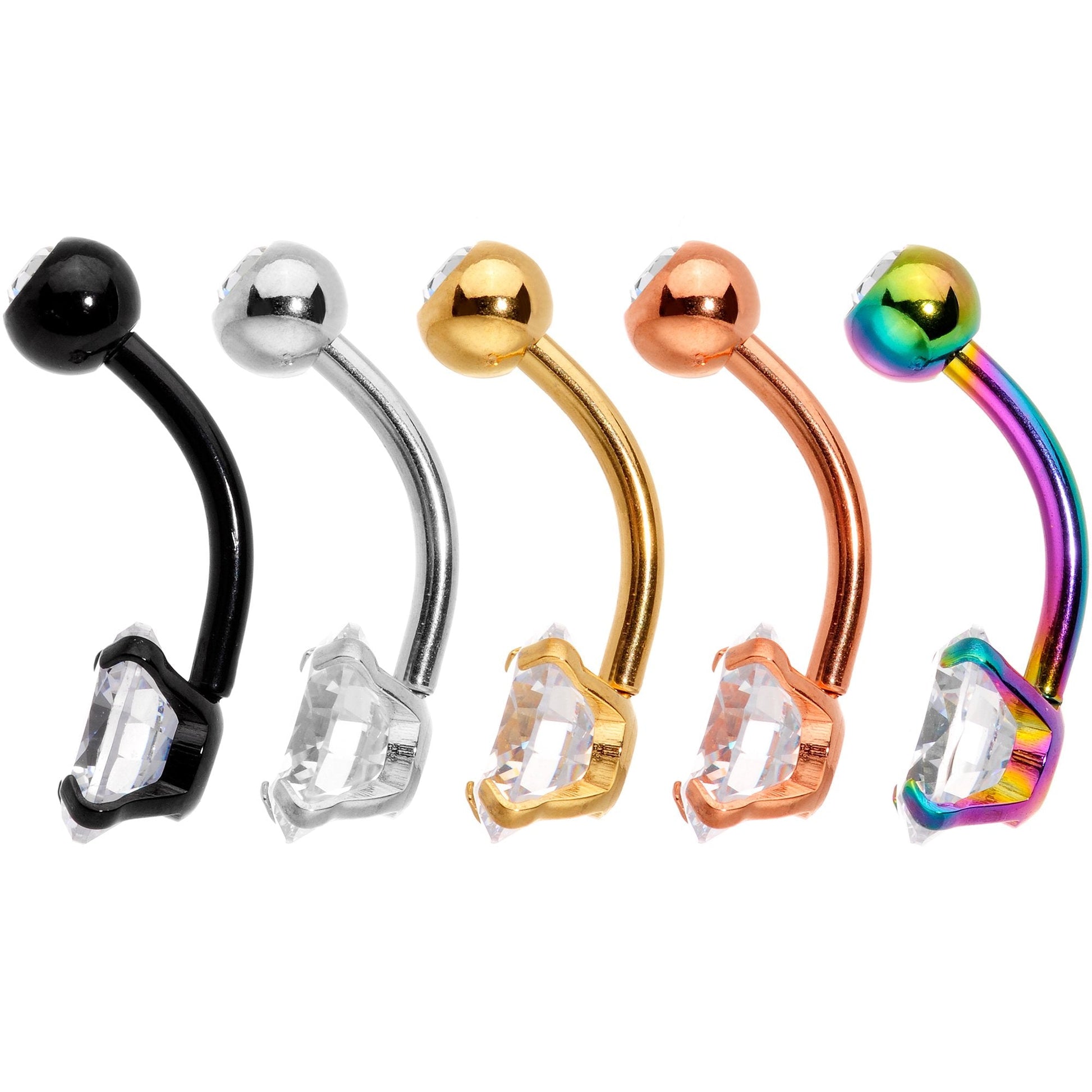Clear Gem Variety Of Colors Belly Ring Set of 5