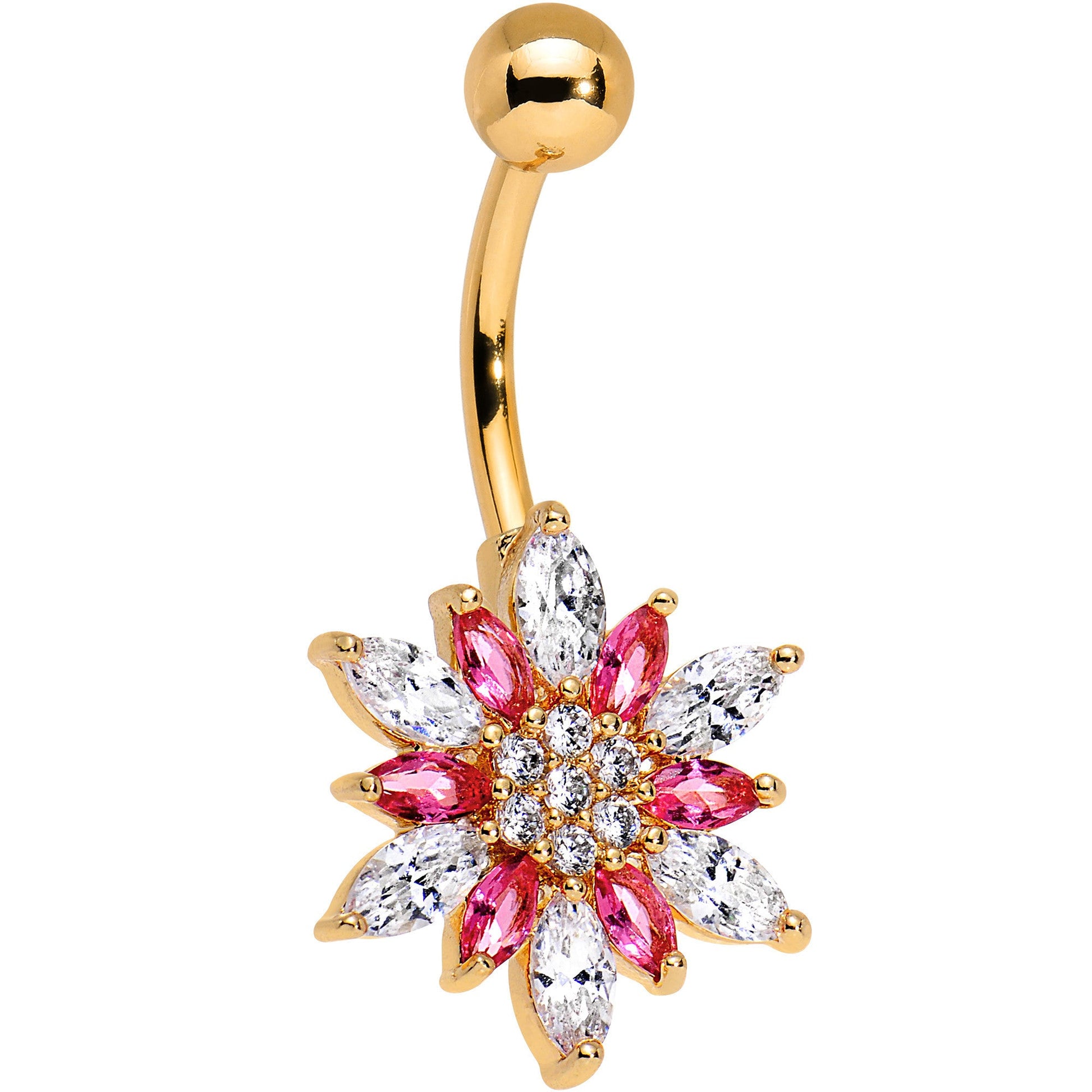 Clear Pink CZ Gem Gold Anodized Holiday Flower Belly Ring
