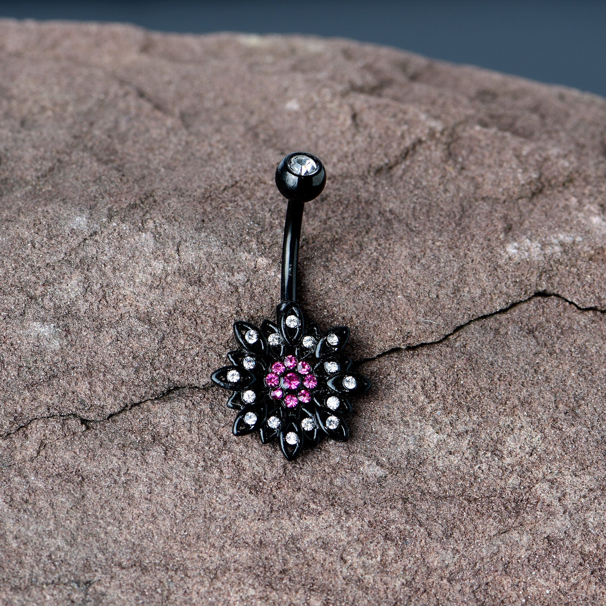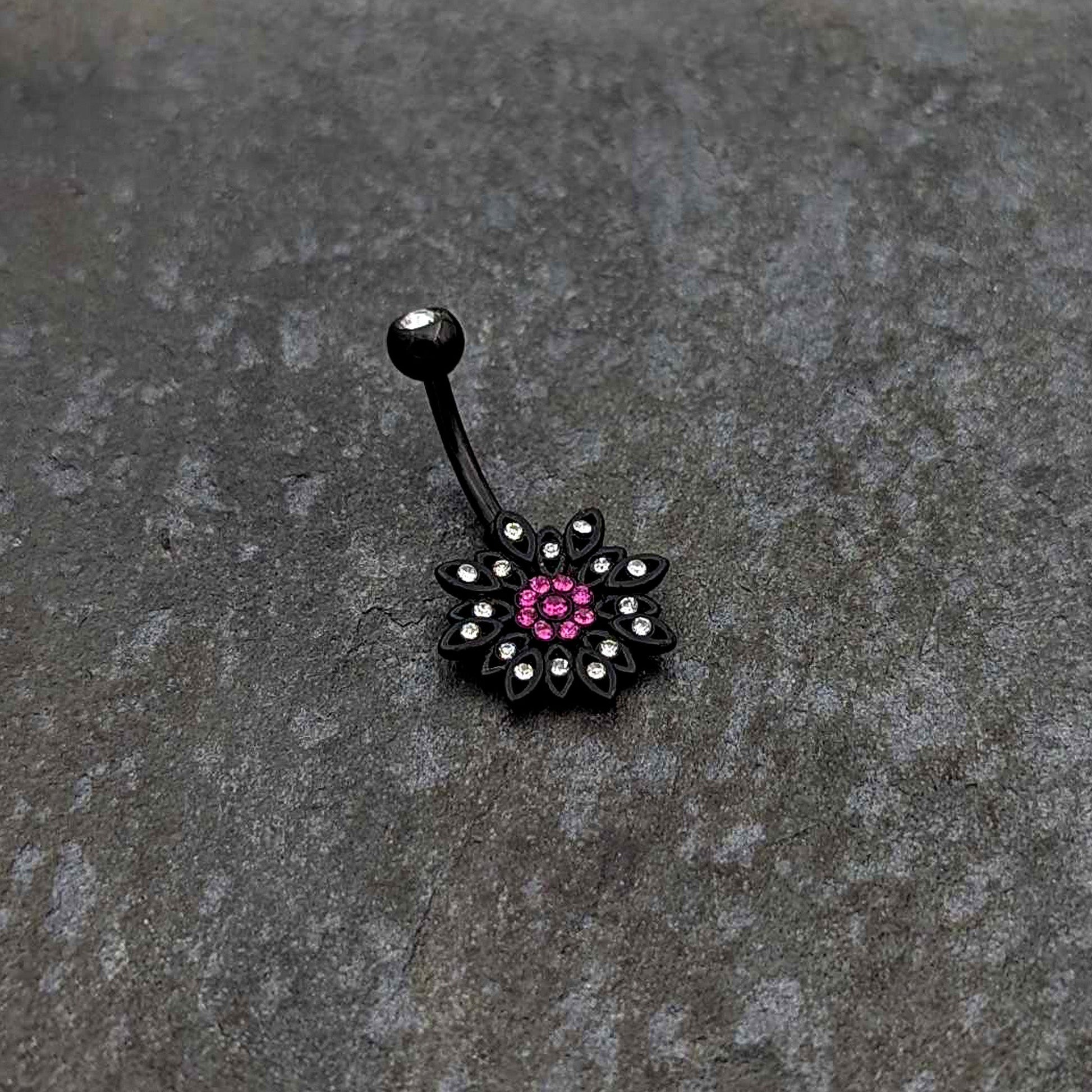 Clear Pink Gem Black Midnight Flower Blooming Belly Ring