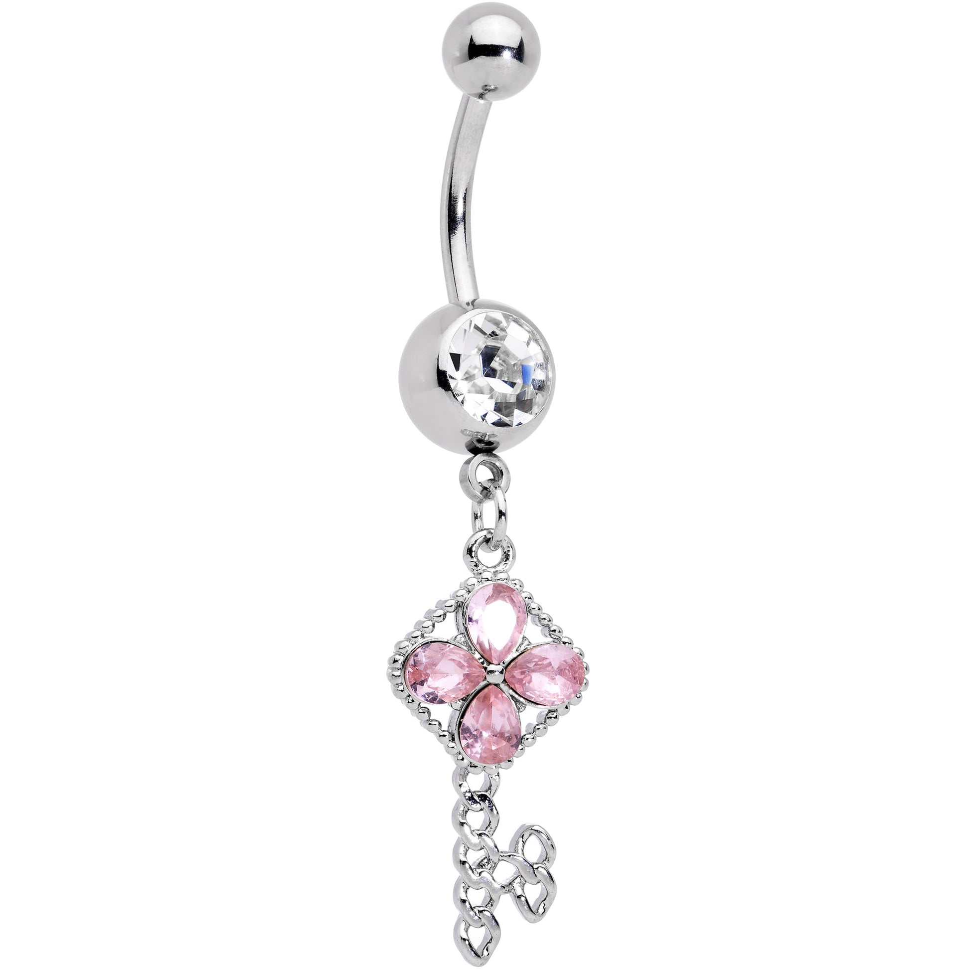 Clear Pink Gem Open Key Dangle Belly Ring