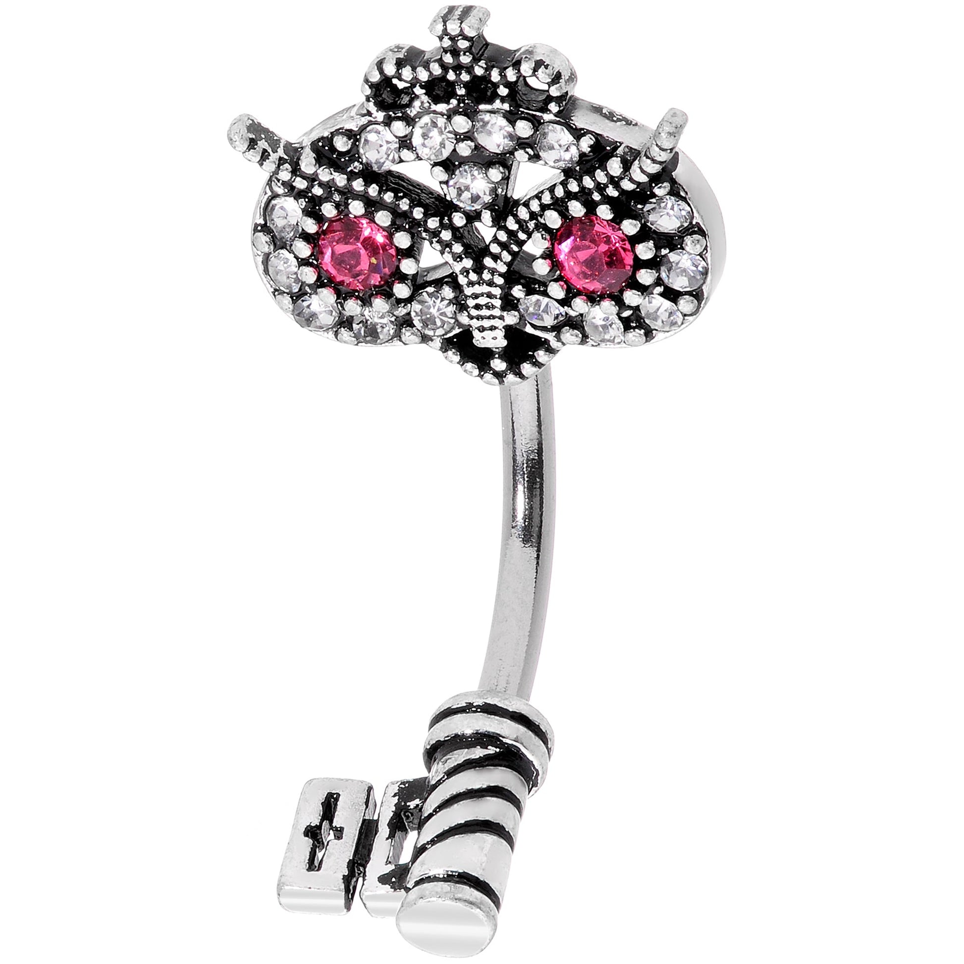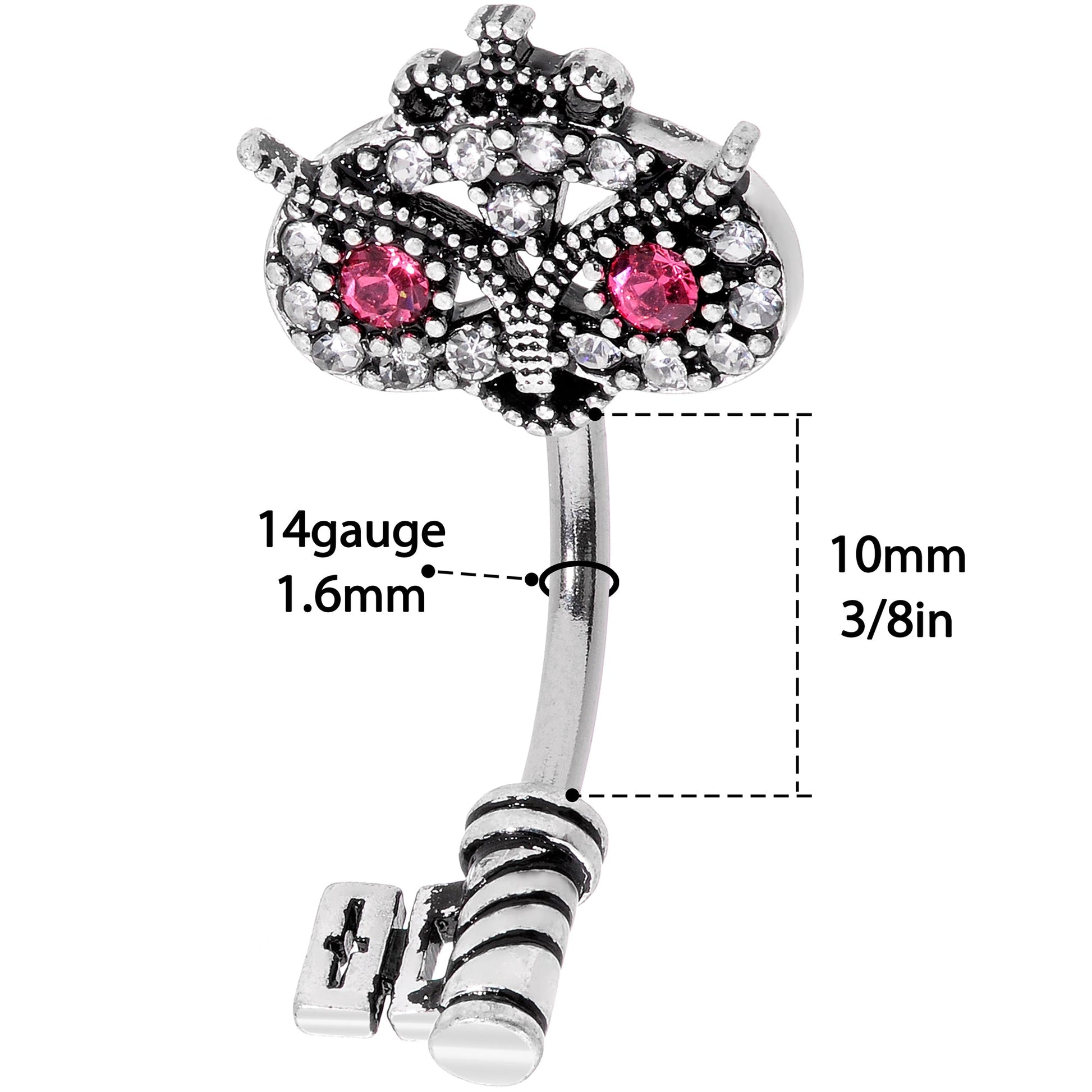 Clear Pink Gem Royal Owl Key Double Mount Belly Ring