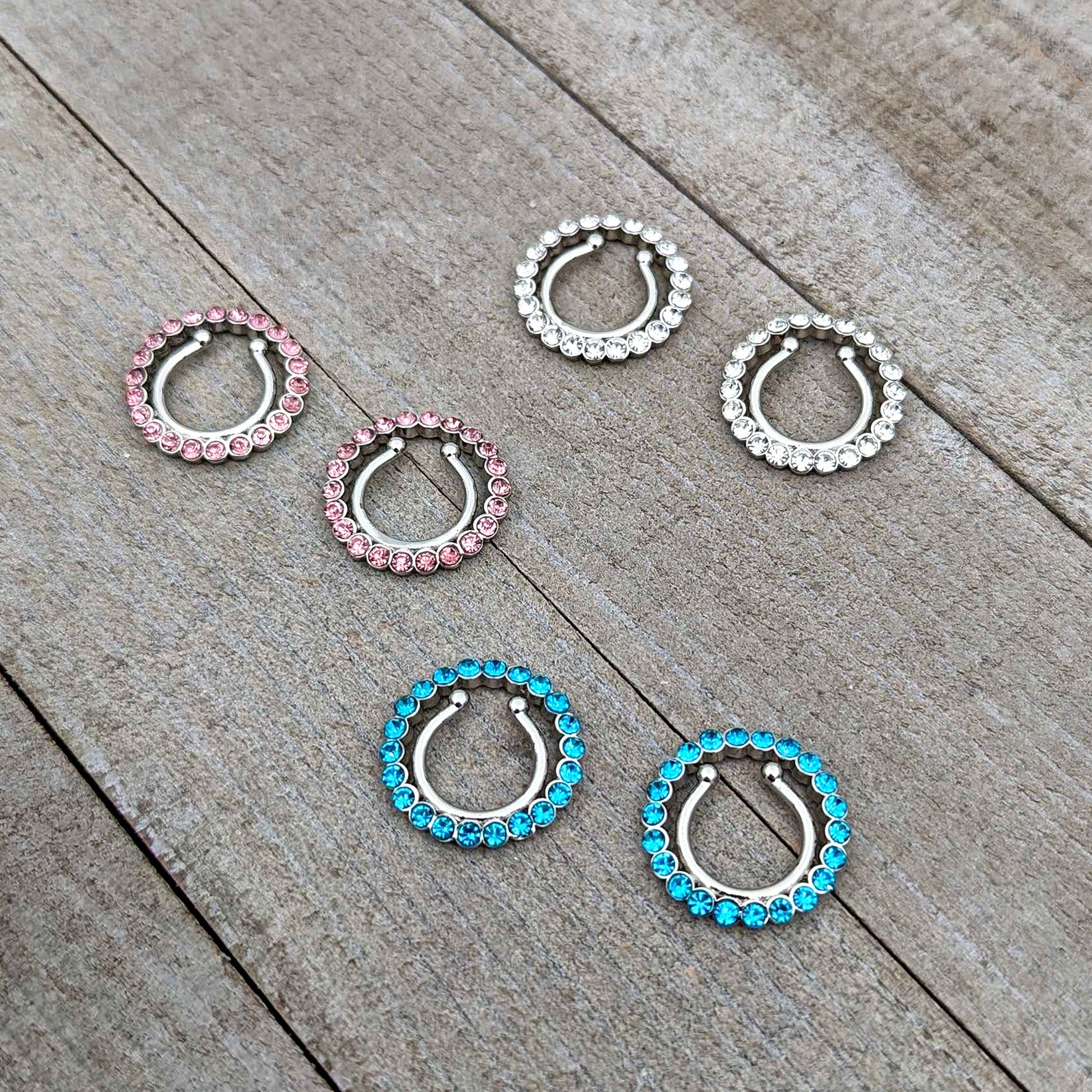 Pink, Blue or Clear Gem Circle Clip On Nipple Ring Set