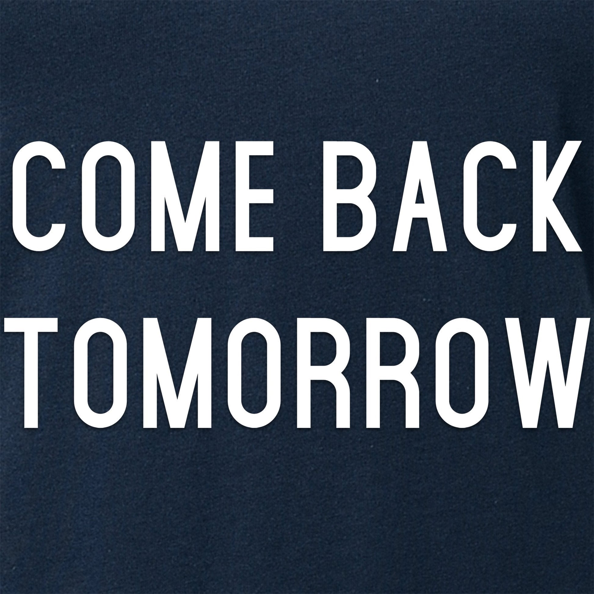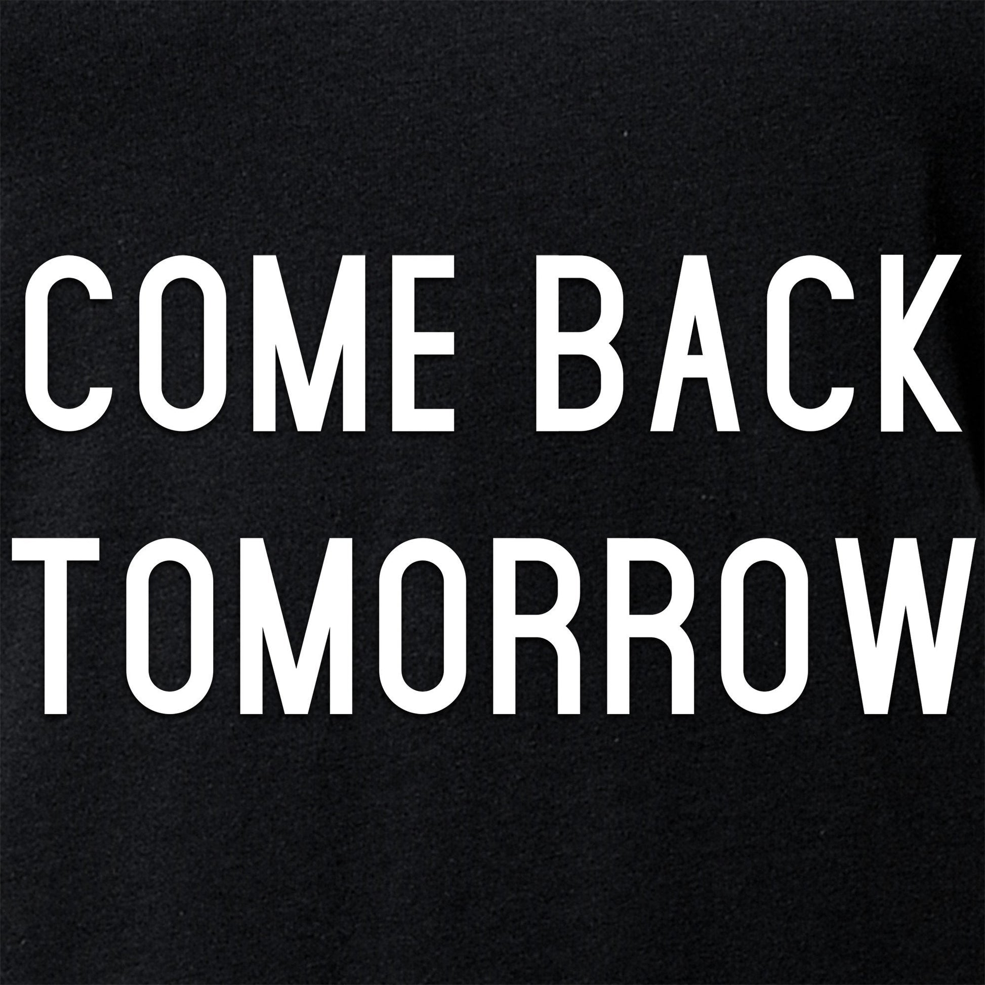 Let the world know that you're not dealing with anything today whenever you wear Body Candy's comfortable 100% cotton "Come Back Tomorrow" t-shirt! This 100% ring spun combed cotton tee shirt features a ribbed knit neckline, v-neck shoulder to shoulder taping, and a comfortable fit that will make this cotton t-shirt one of your favorites. It's the perfect tee for a polished look!
