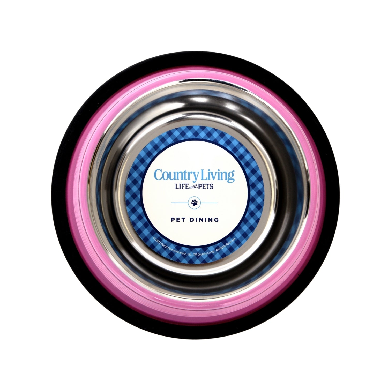 Country Living Set of 2 Ribbed Non-Slip Pet Bowls – Carnation Pink
