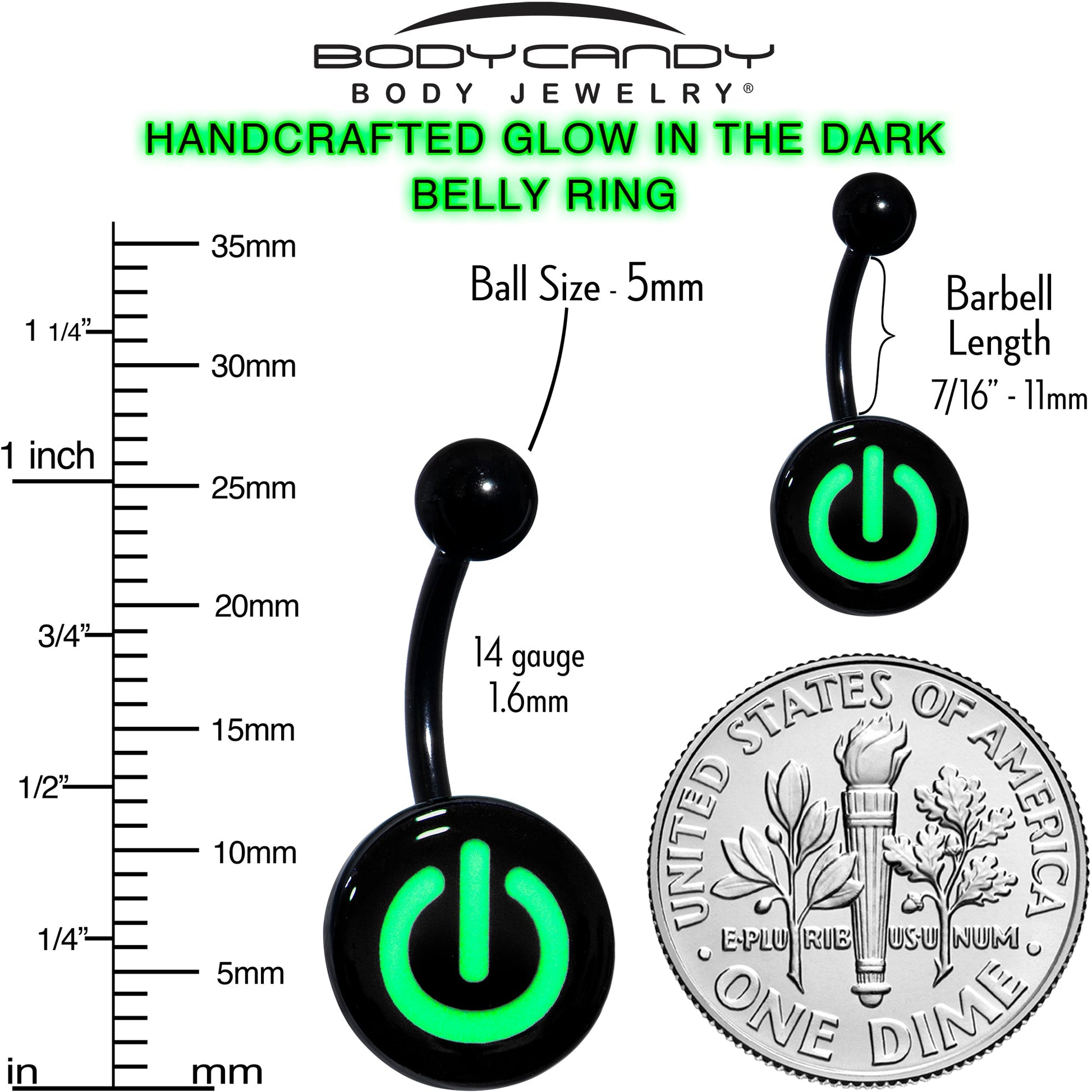 Glow in the Dark Titanium Power Button Belly Ring