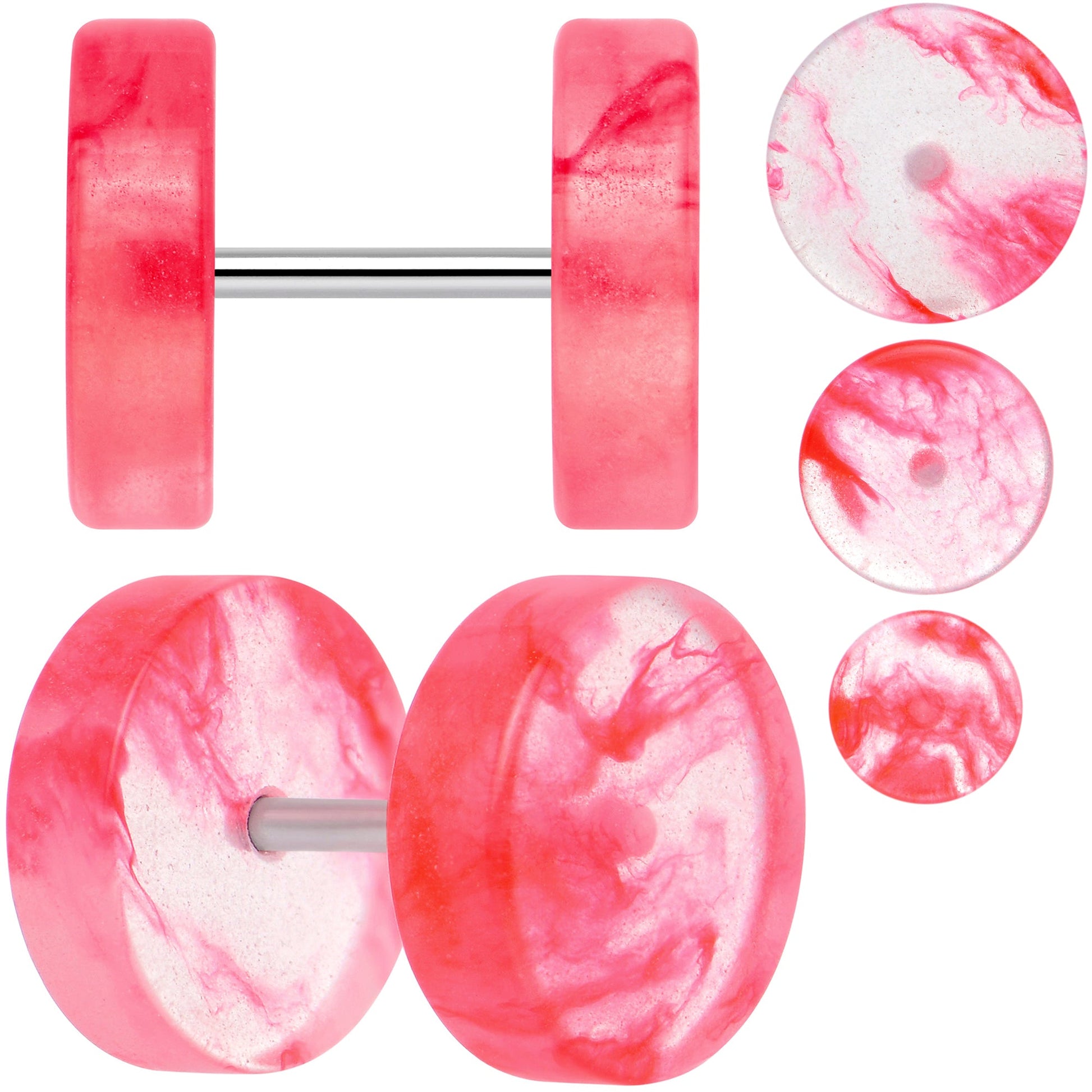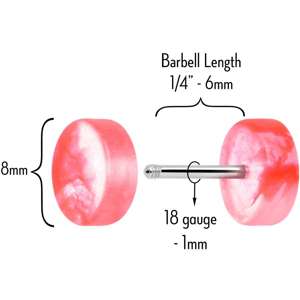 The front and back feature round segments to give the look of plugs with no stretching required. The front and back portions feature swirling color and when the lights go down, they glow in the dark. Get the look without committing to stretched lobes with these glow in the dark cheater plugs. Sold as a set of two.