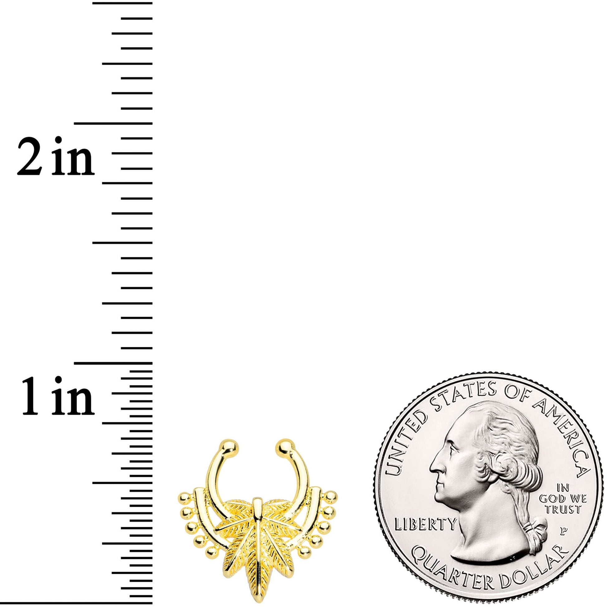 Gold Tone Ornate Pot Leaf Clip On Fake Septum Ring