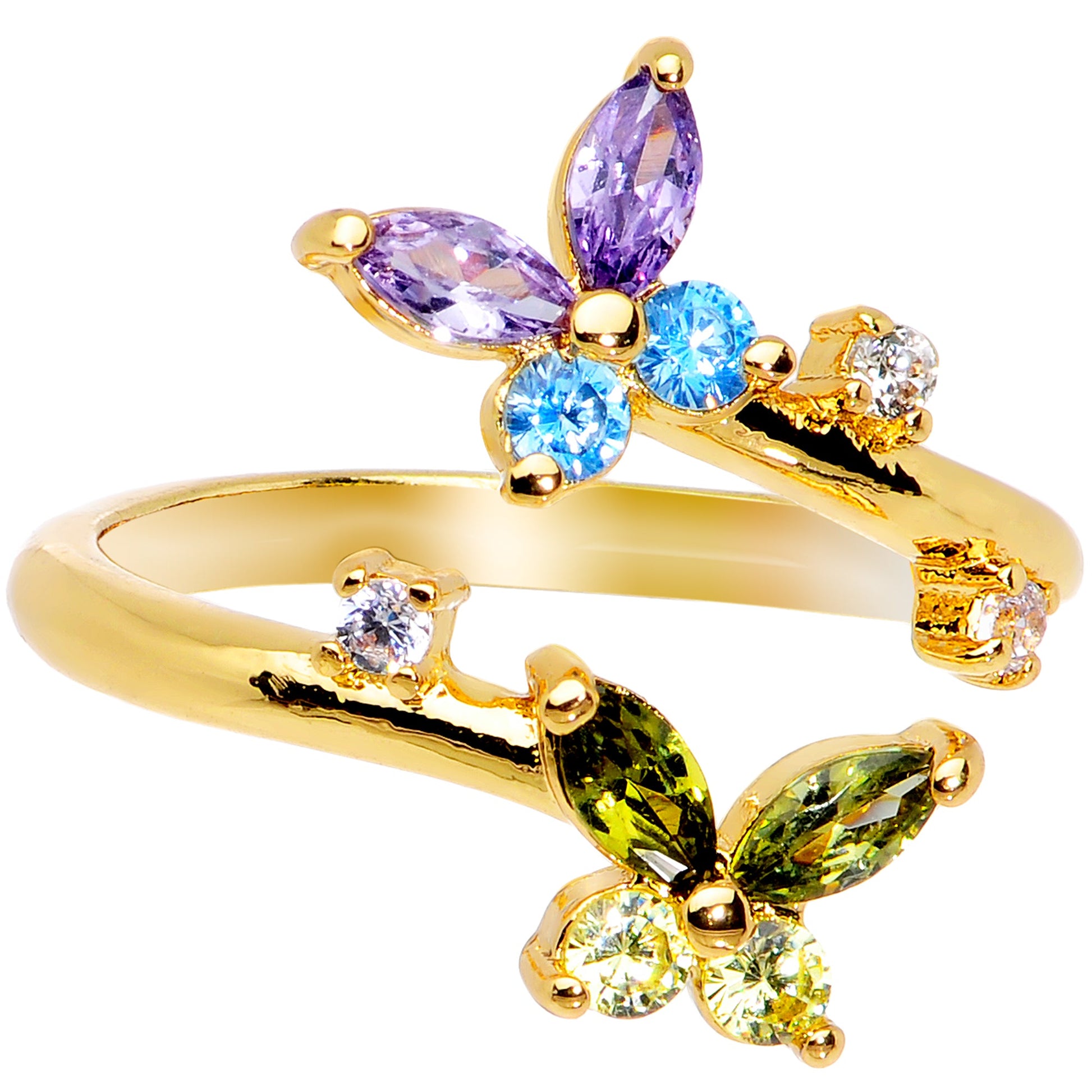 Green Purple Blue Gem Gold Tone Butterfly Spiral Toe Ring
