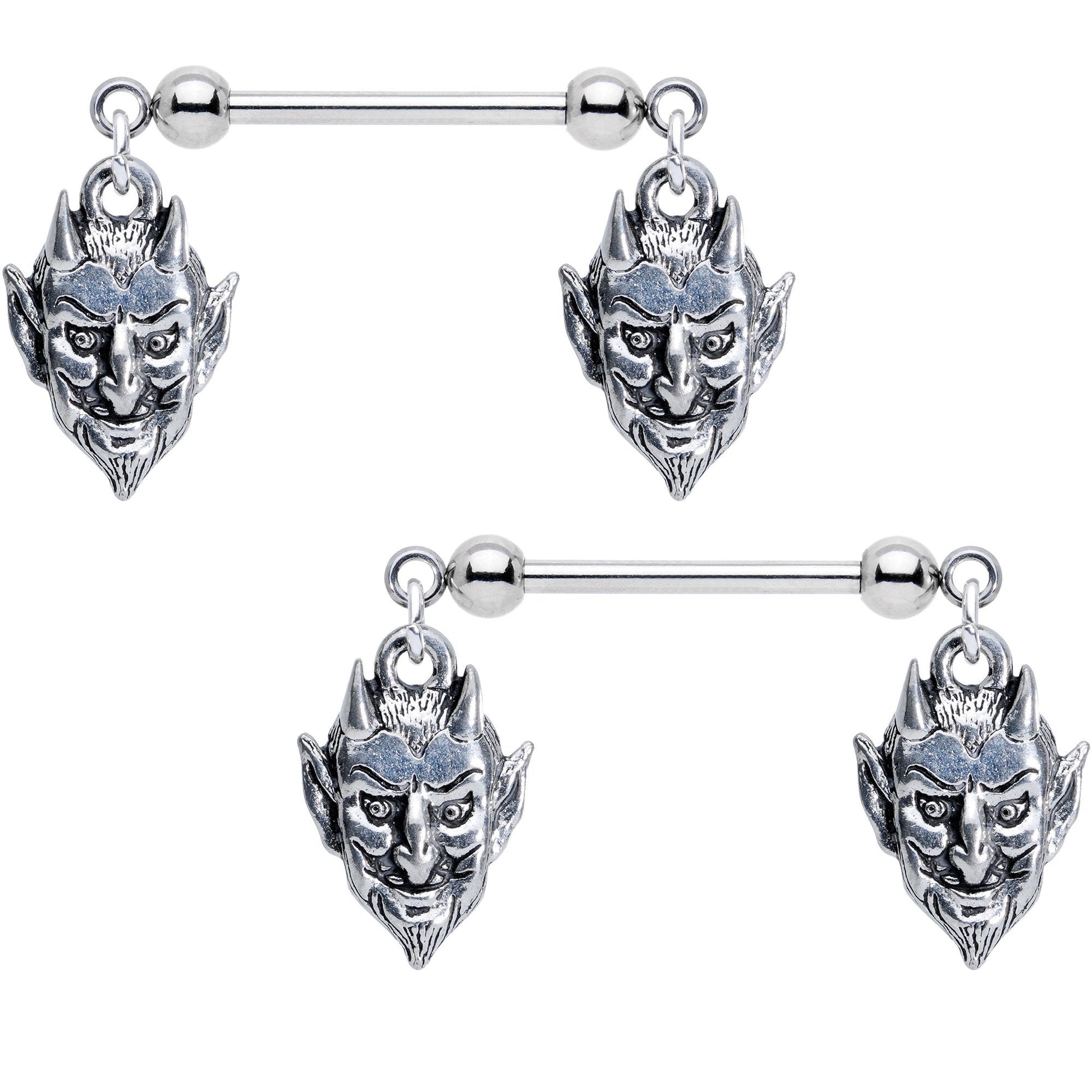 Muahaha, these Beelzebub dangle nipple rings are simply evil! But if that's your style then these fun nipple rings are just for you. A pair of creepy, devilsh charms dangle from these 14 gauge nipple rings. The Beelzebub dangles are mounted on a pair of 5/8" straight barbells made with durable 316L surgical grade stainless steel. Handcrafted in the USA!