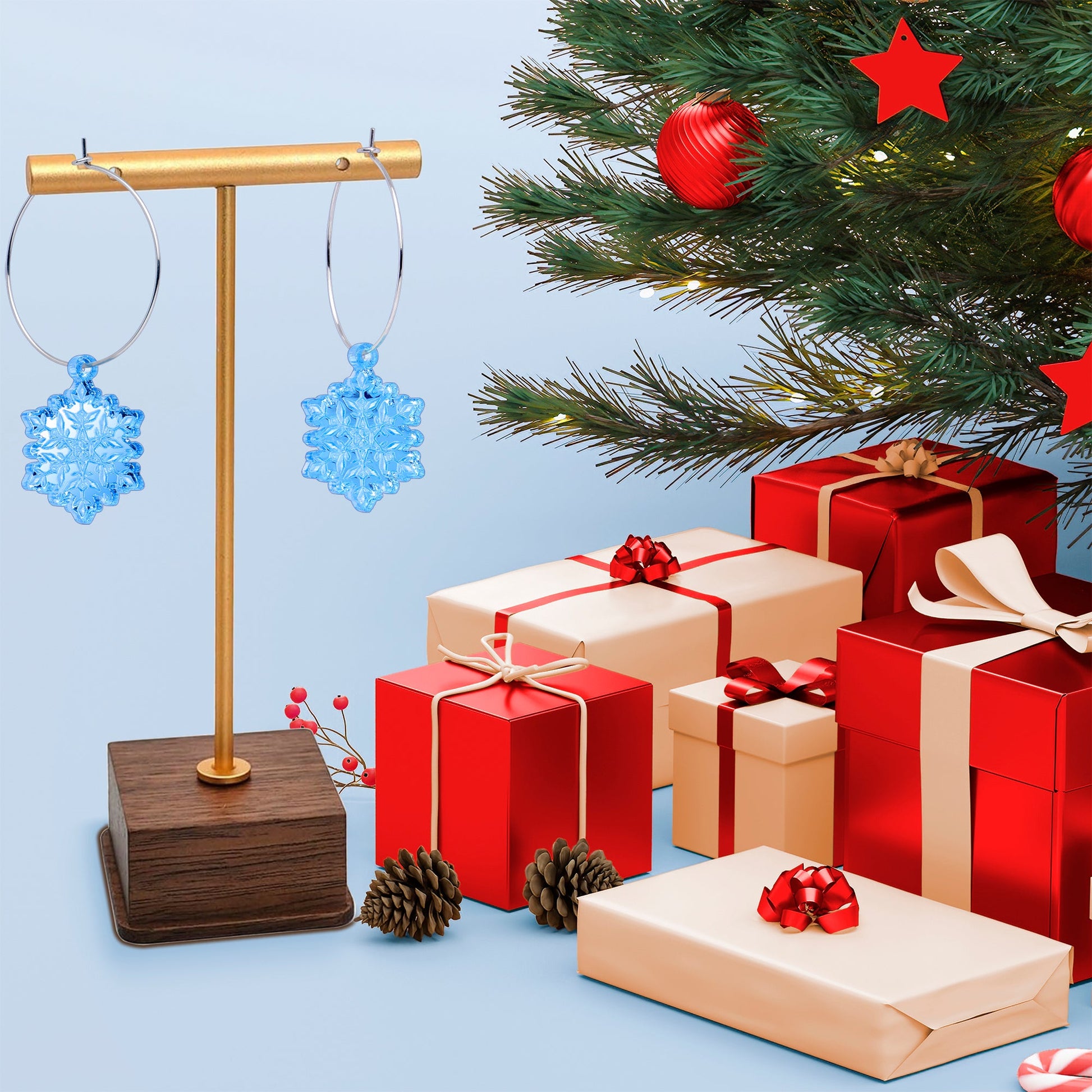 Get a look that's cooler than ice this holidays season with our clear snowflake earrings. Each stainless steel hoop earring for pierced lobes features a dangle snowflake charm made of translucent blue acrylic with ornate detailing, as befits a unique snowflake.