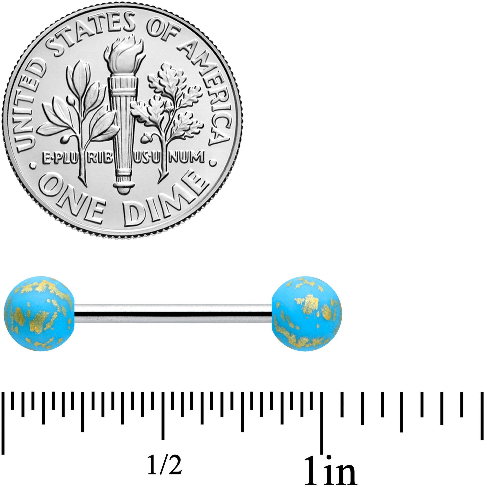 Don't let your look fall flat when you can go matte - like with this 14 gauge tongue jewelry! It's made with a 5/8" durable 316L surgical grade stainless steel straight barbell with 5mm ball ends. The ball ends are made with light blue acrylic and are embellished with a color splatter effect. They're further embellished with a matte finish for a truly stylish look. You'll be mad about matte with this splatter effect tongue piercing ring!Specifications