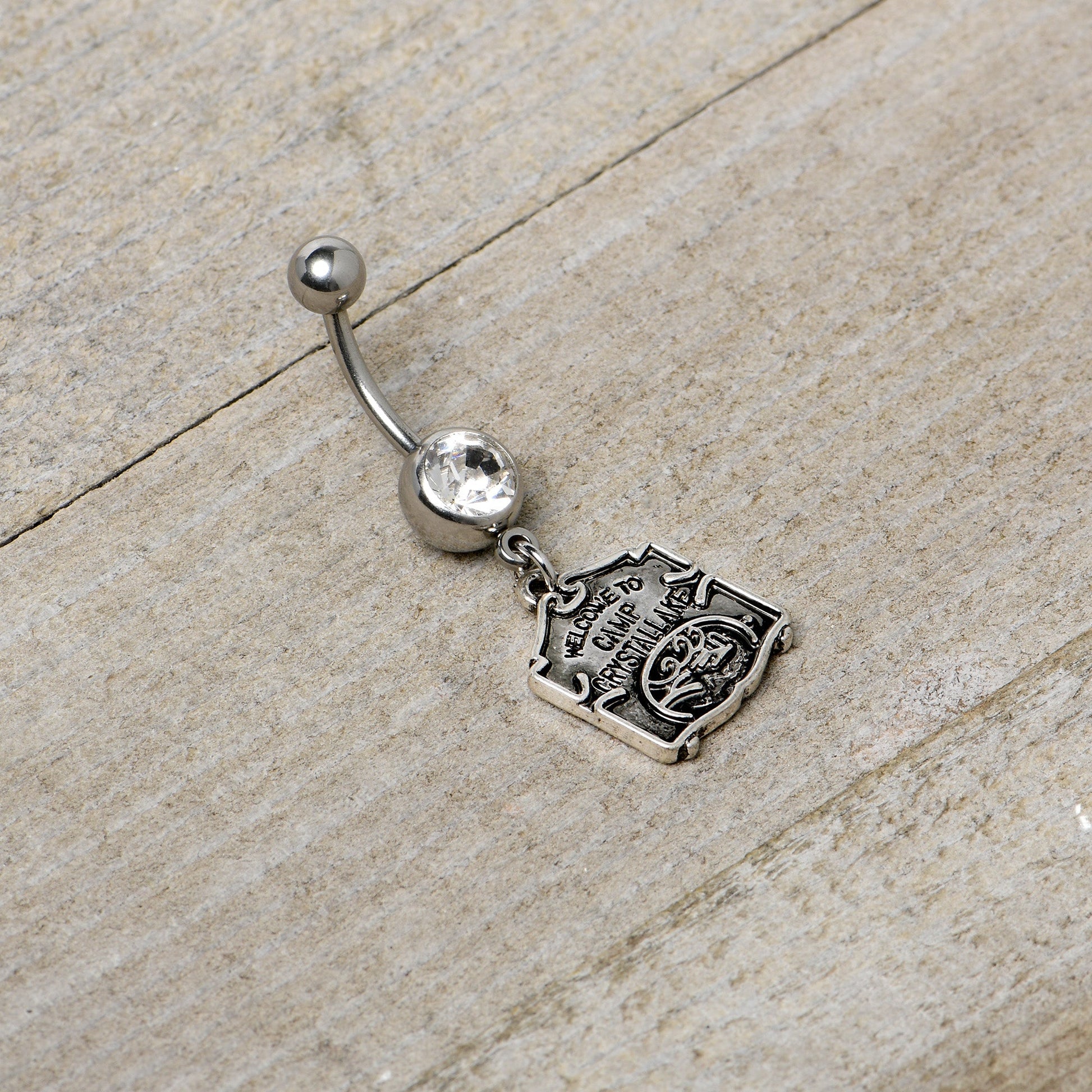 Officially Licensed Friday the 13th Clear Gem Camp Sign Dangle Belly Ring