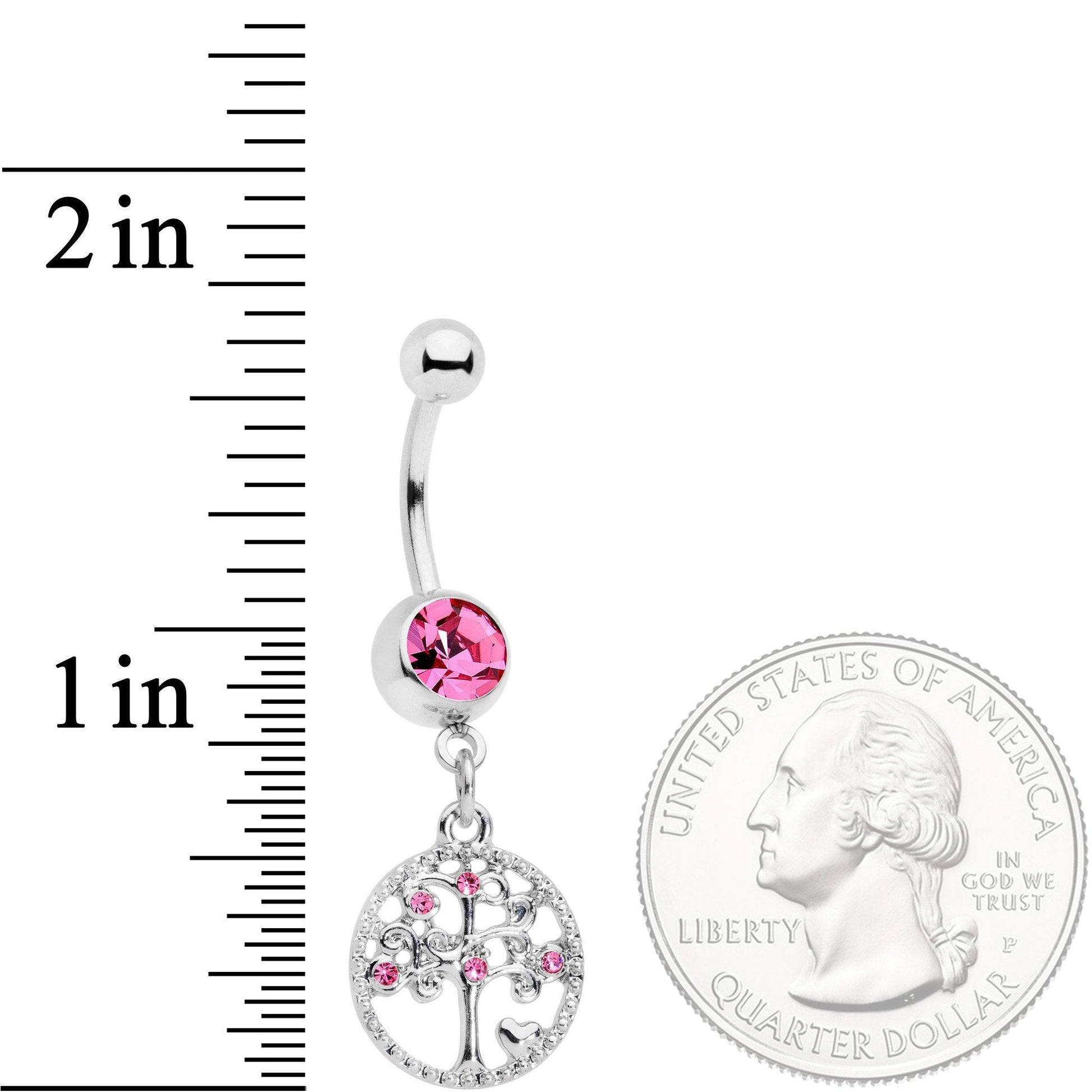 Pink Gem Love Tree of Life Dangle Belly Ring