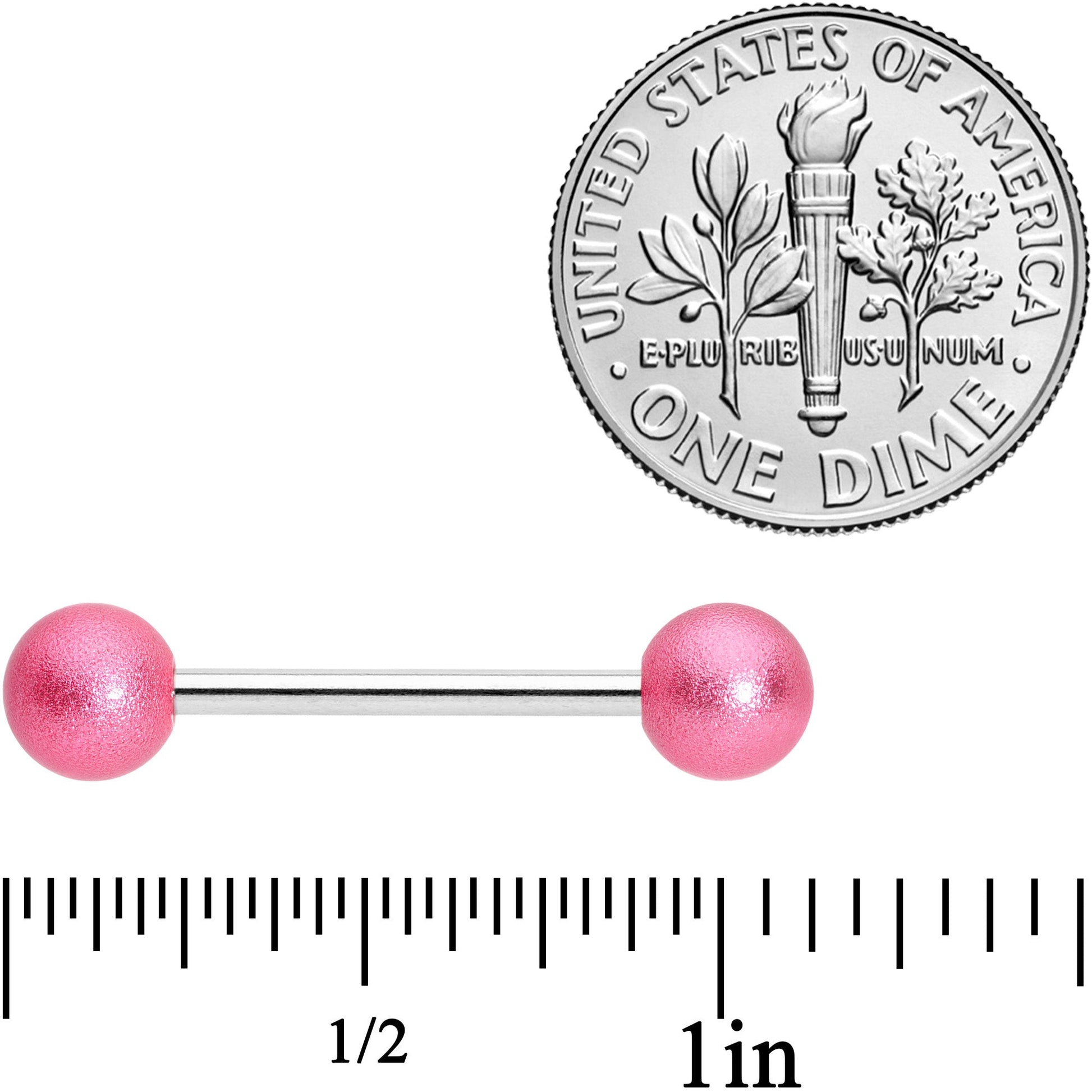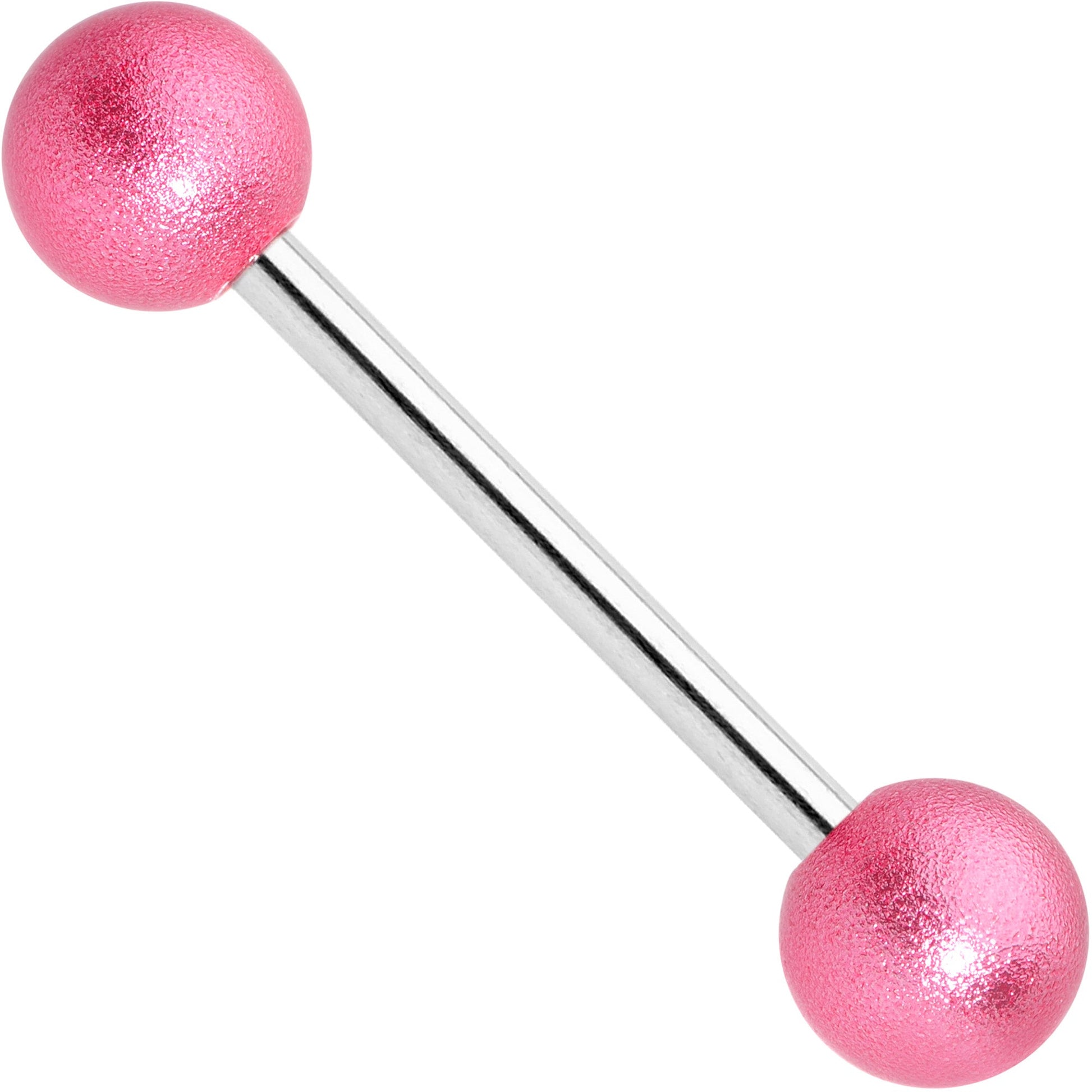 For a fascinating tongue piercing this 14 gauge barbell tongue jewelry is a must-have. It's made with a 5/8"durable 316L surgical grade stainless steel straight barbell with 6mm pink sandblasted style ball ends. Add a little texture to your tongue piercing with this sandblasted style textured tongue jewelry!Specifications