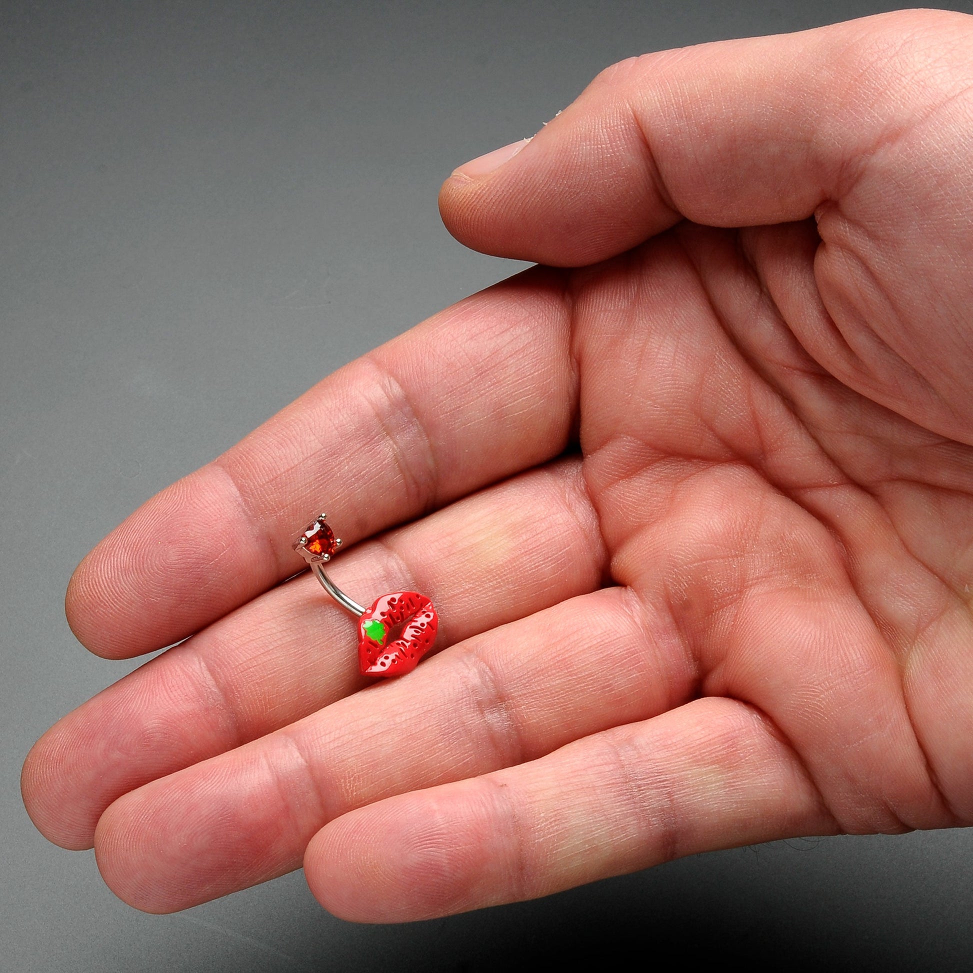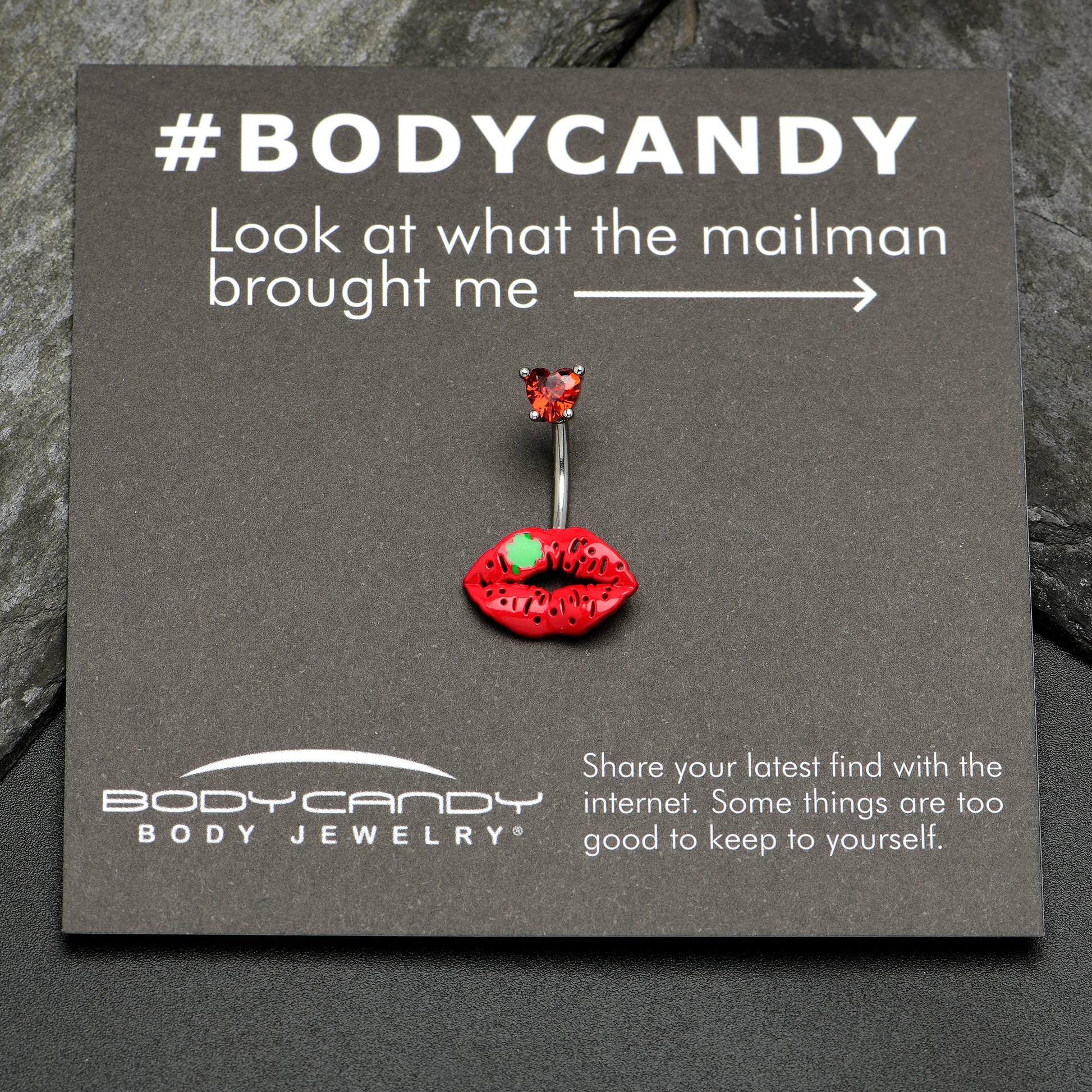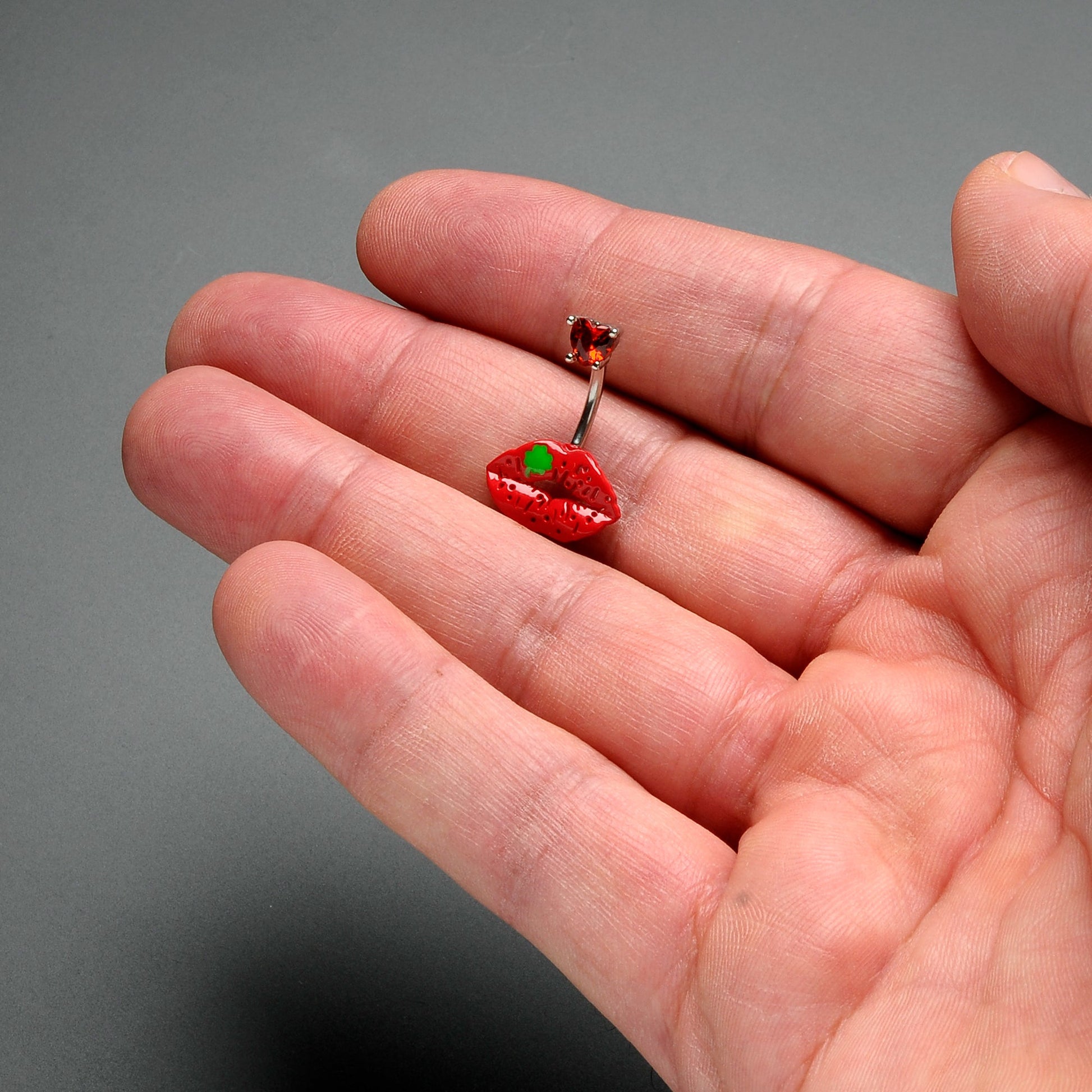 Red CZ Gem Lucky Lips St Patrick's Double Mount Belly Ring
