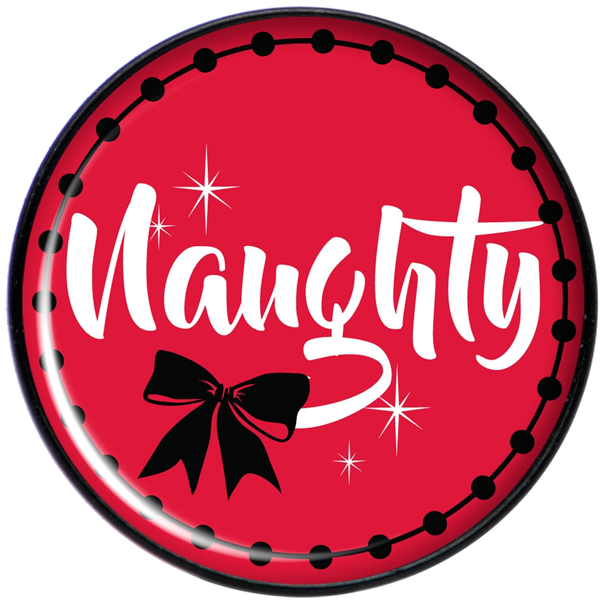 Get decked out from head to toe in Christmas spirit when you wear this pair of festive holiday earrings! Made with black PVD over stainless steel posts with friction backings, these earrings for women feature a combined message of "Naughty," "and Nice" on a red background logo inlay. This pair of Christmas fashion earrings makes a perfect seasonal gift too.