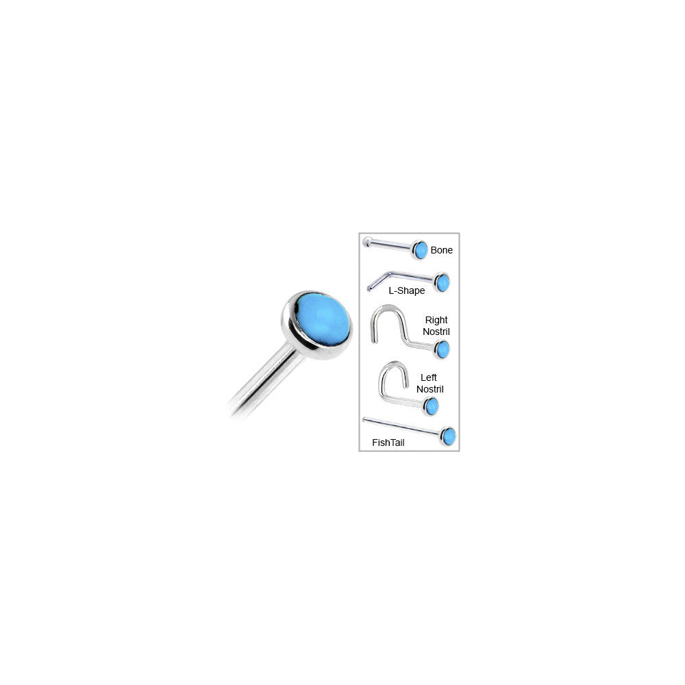 Solid 14K White Gold 2mm Turquoise Nose Ring