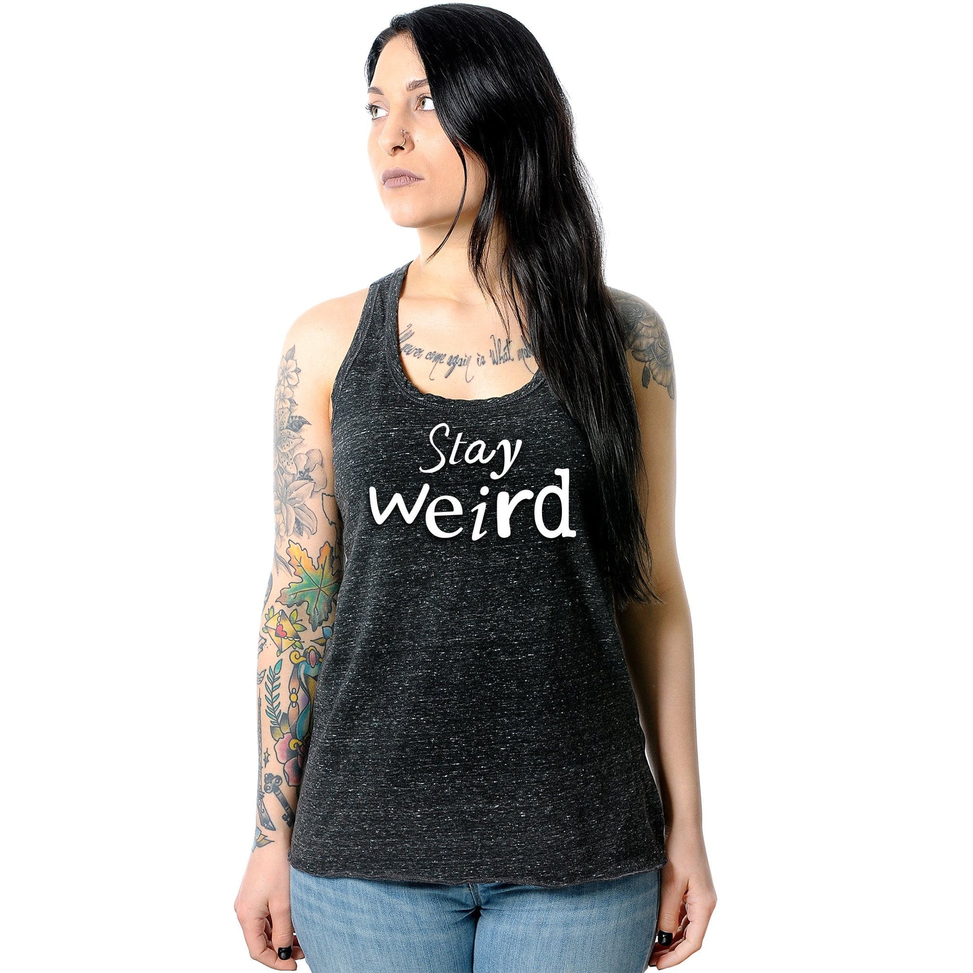 Stay Weird Black Gray Cosmic Twist Back Tank Top