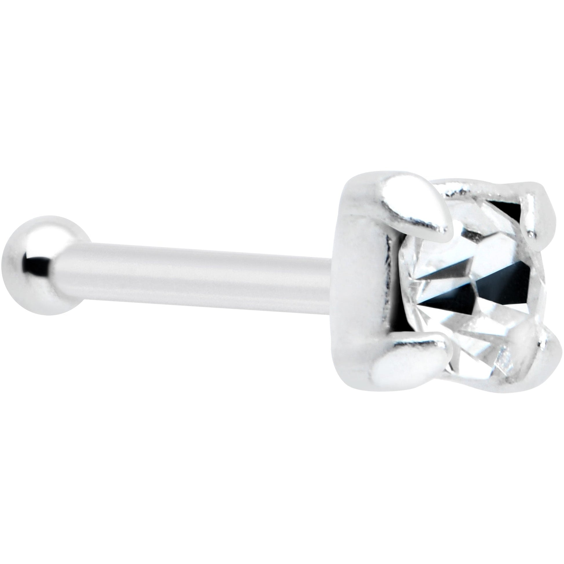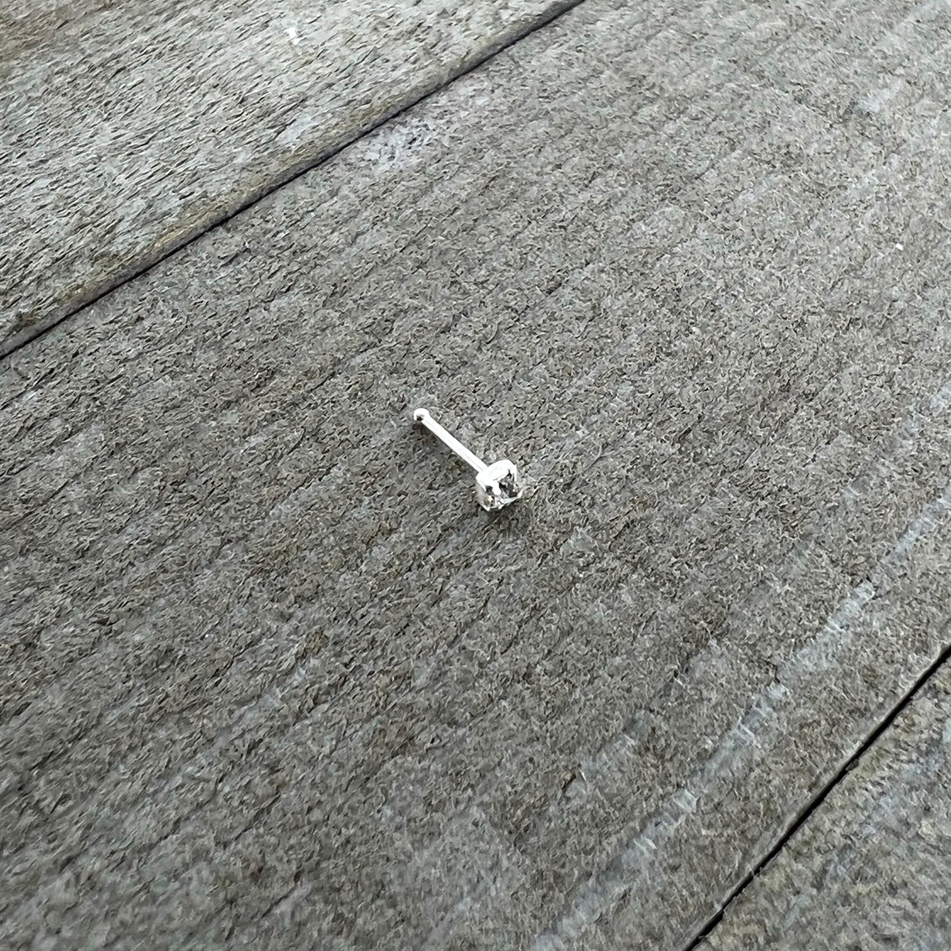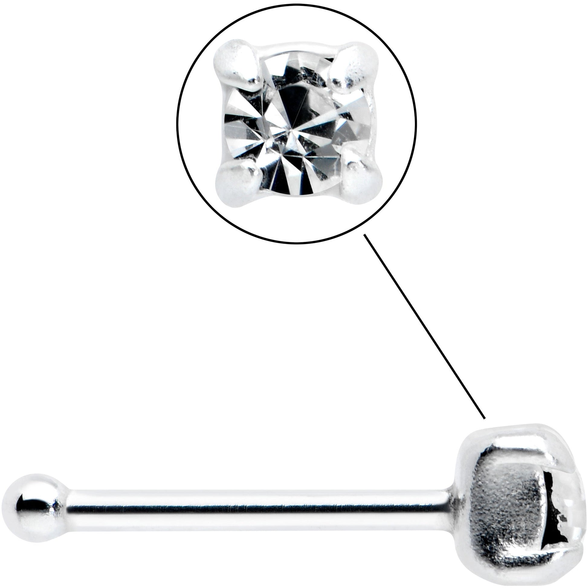 Sterling Silver 2mm Clear Nose Bone Created with Crystals
