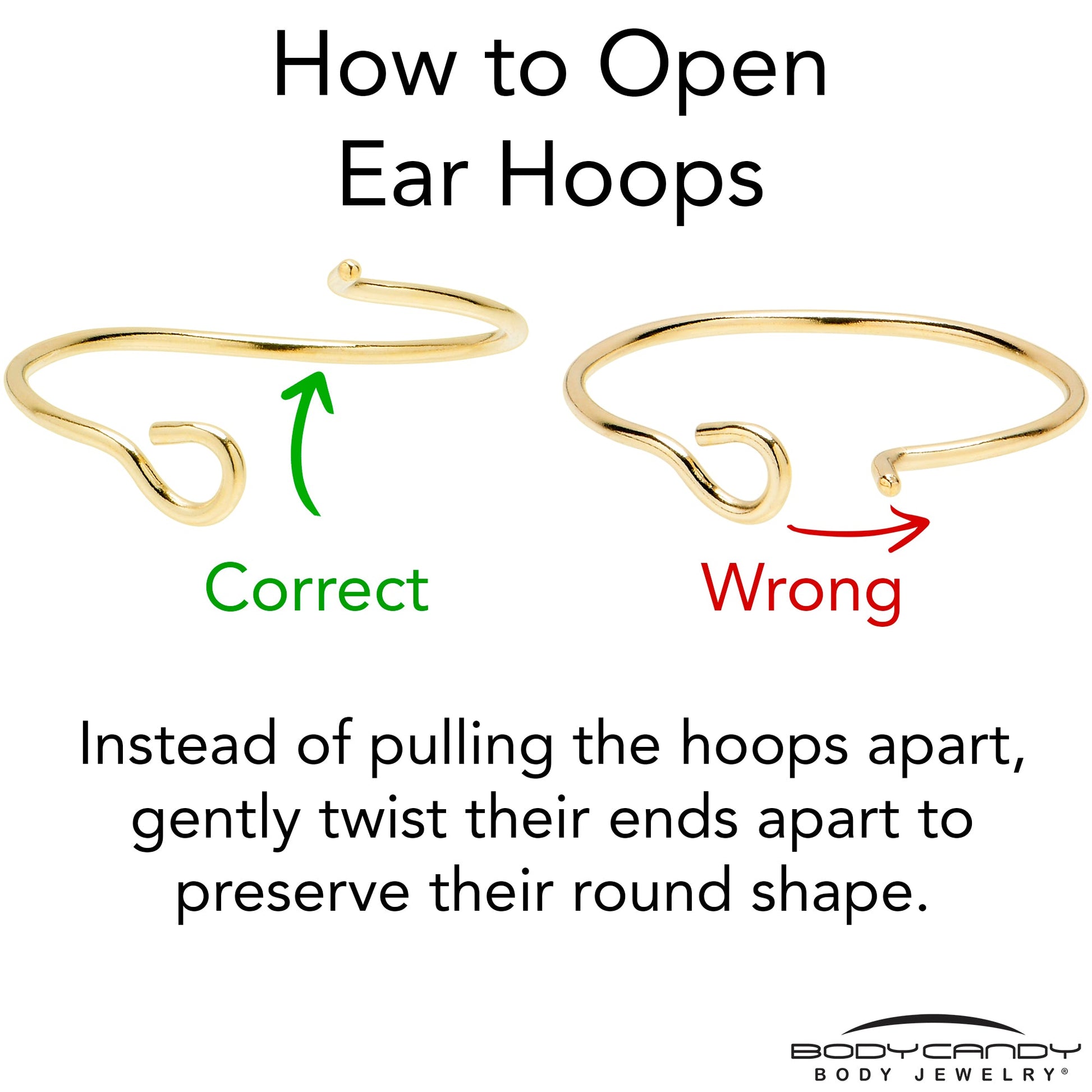 Every ear and every piercing is different so knowing the correct ear hoop body jewelry piercing size and measuring your earlobe for the perfect fit is highly recommended.