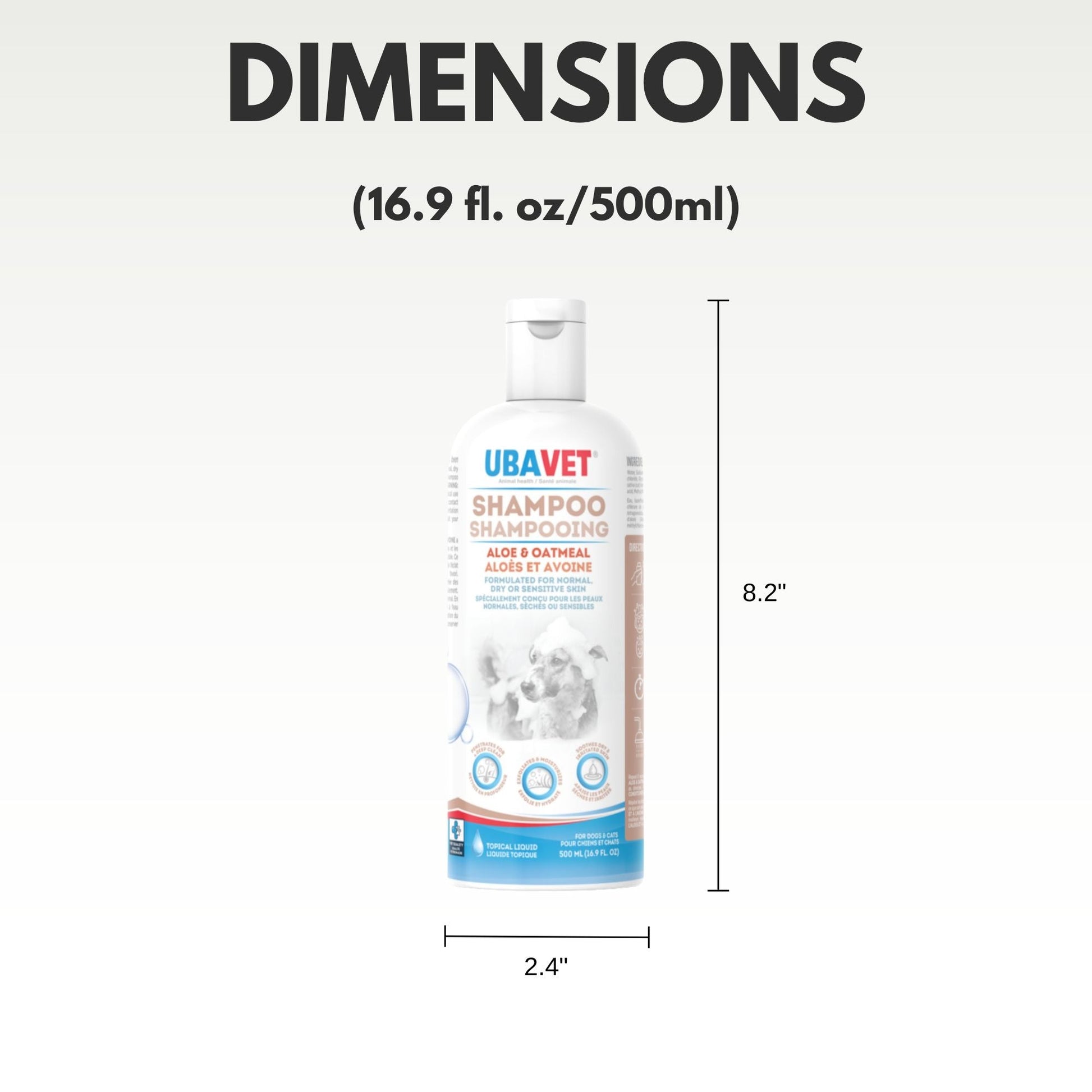 UBAVET Aloe & Oatmeal Shampoo for Dogs & Cats – Gentle, Moisturizing Cleanser for Sensitive Skin (16.9 fl oz / 500ml)